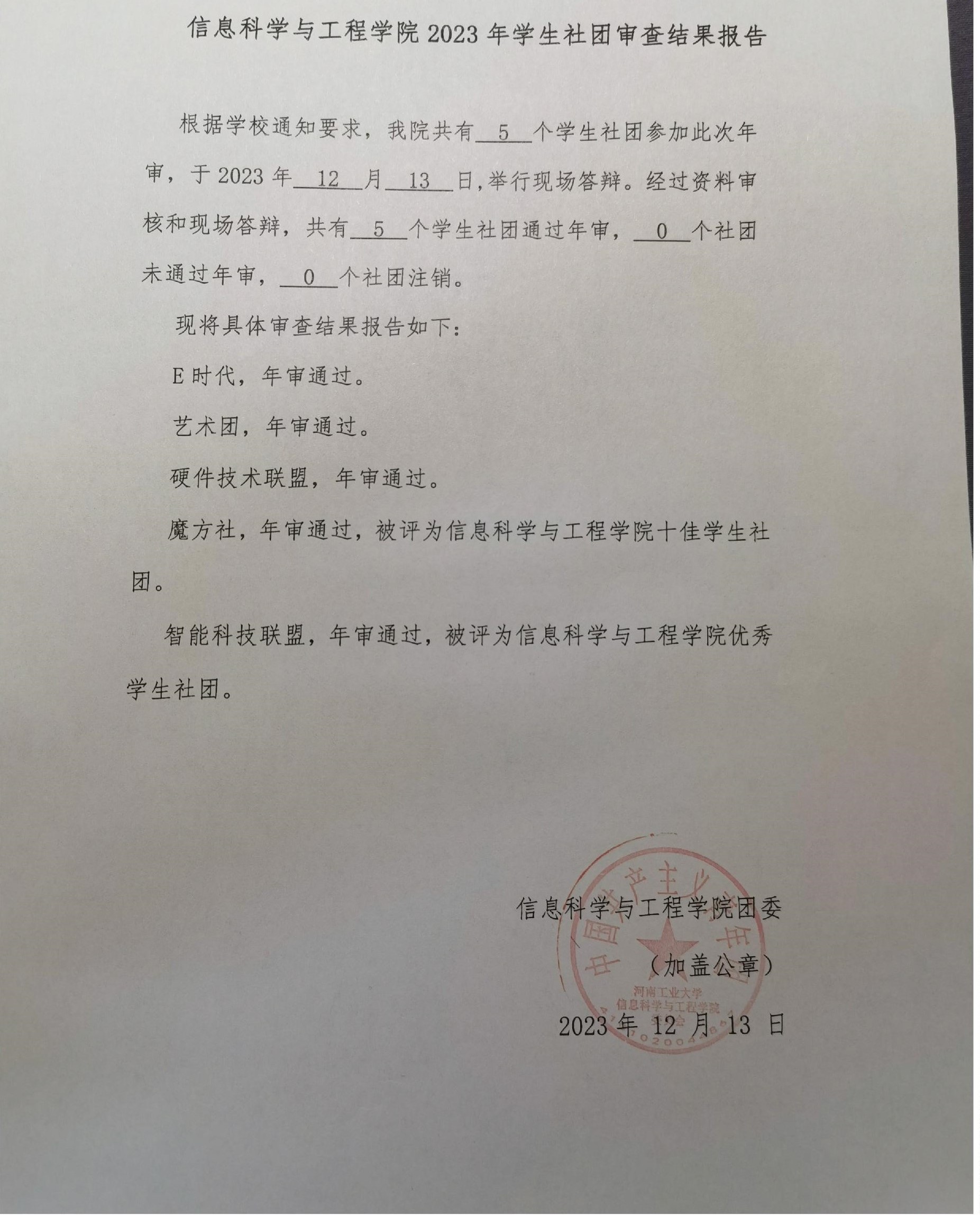 探球网 2023年学生社团审查结果报告