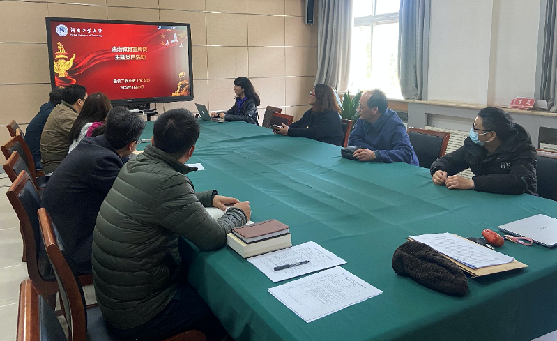 为全面贯彻党的二十大精神和习近平新时代中国特色社会主义思想,落实习近平总书记关于教育的重要论述和习近平法治思想,进一步推进依法治教、依法治校和依法办学,提升支部党员的法治素养,4月25日下午,通信工程系党支部在6412会议室开展 “法治教育宣传”主题党日活动。支部全体党员参加了本次学习活动,会议由通信工程系党支部书记马海华主持。