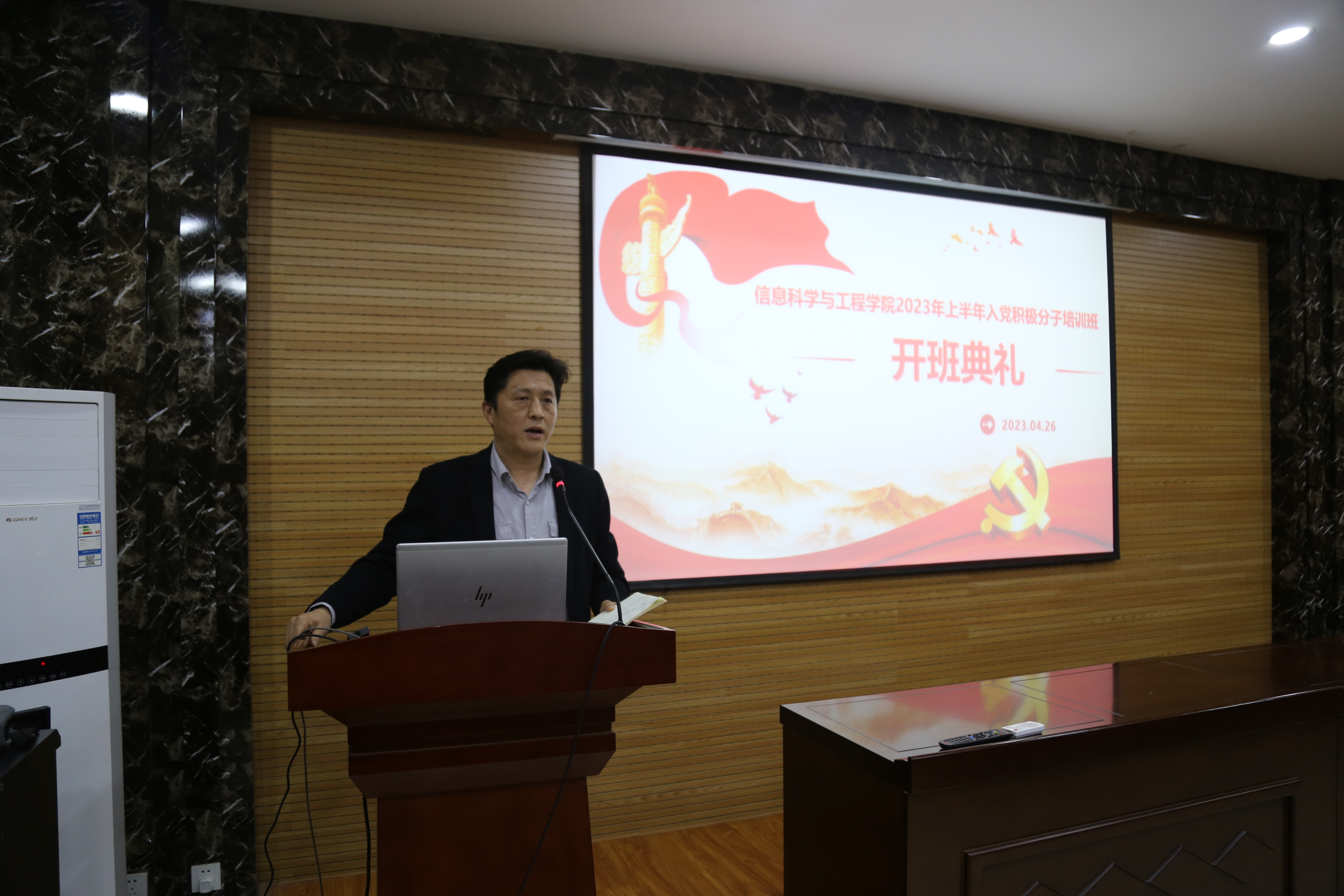 刘磊介绍学院分党校的课程安排和纪律管理规定,希望全体学员在培训过程中结合个人的学习生活,将理论学习内化于心、外化于行。