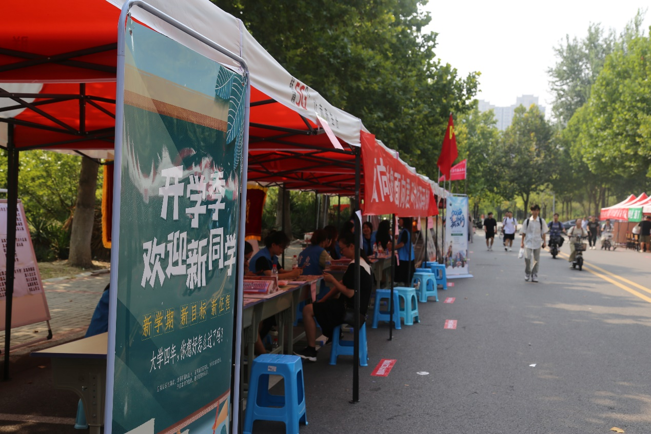 迎新大本营设在学生公寓A区附近,主要由学生会主席和数名志愿者负责本次迎新的相关事宜,主要包括会场的布置、办理报到注册手续、审查新生材料、发放材料等。新生报到现场高挂着迎新横幅,工作进行得有声有色。在本次迎新工作中,志愿者们热情接待每一位学生家长,与报到的学生及家长们交流,对新生报到中遇到的疑问进行耐心地讲解,抓好新生入学的绿色通道工作,不让每一个家庭困难的学生因为经济困难而无法入学;为了做好新生的专业介绍工作,迎新点还专门设立了多个新生咨询处;志愿者们积极配合,做好接待工作,安排各项细节,维持整个现场的秩序;迎新活动进行得如火如荼、井井有条,2023级研究生新生秩序井然地排队注册、咨询,工作人员热情耐心。