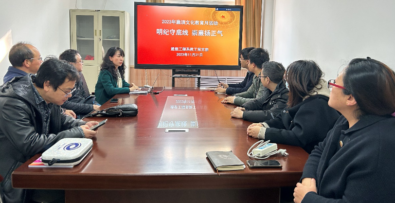 11月21日下午,通信工程系党支部在6206开展“明纪守底线 崇廉扬正气”主题党日活动,深入贯彻落实习近平总书记关于廉洁文化建设和加强党的纪律建设的系列重要讲话精神,进一步加强党支部廉洁文化建设,营造崇廉尚洁的文化氛围。支部全体党员参加了学习活动,会议由通信工程系党支部书记马海华主持。