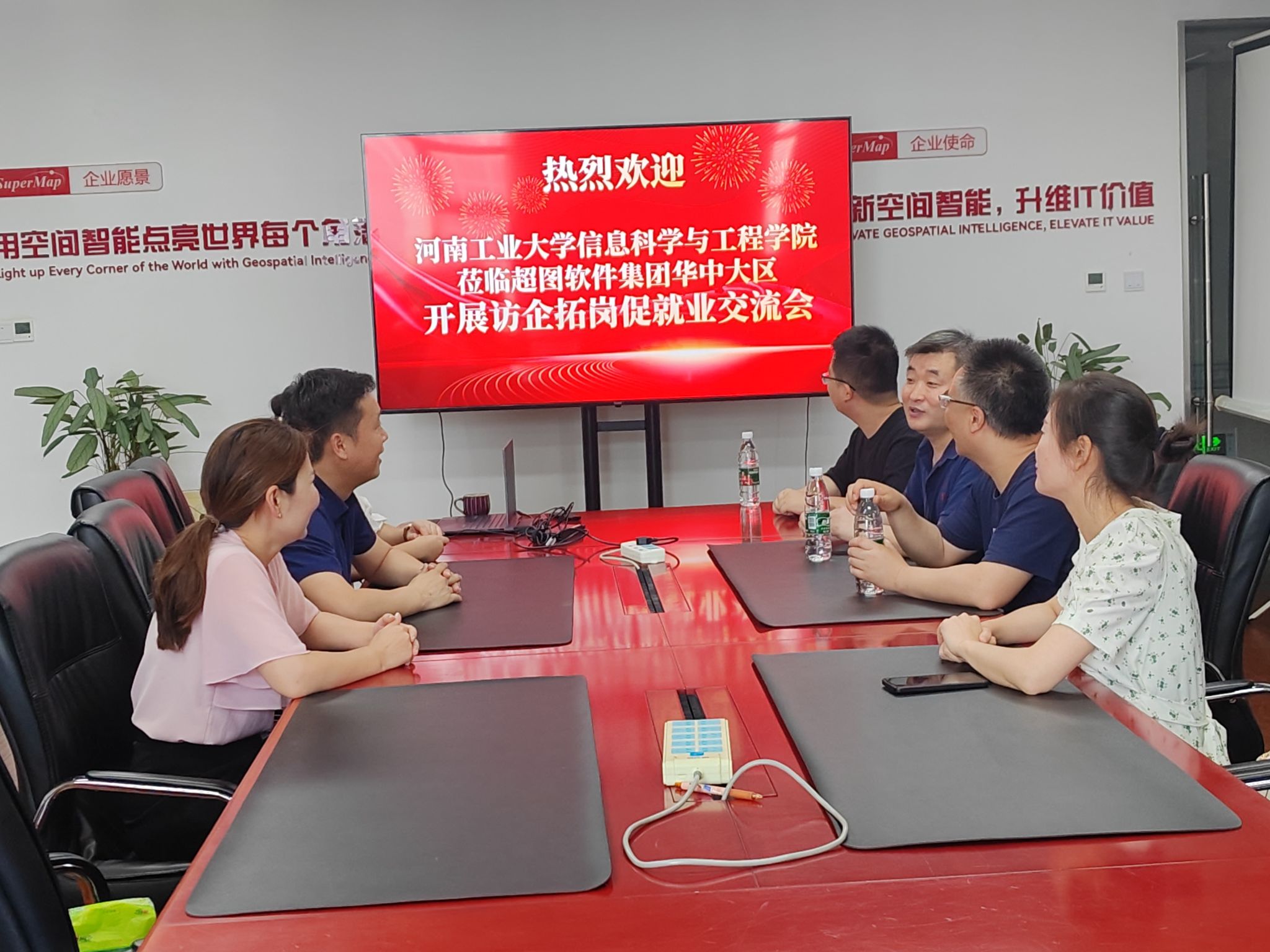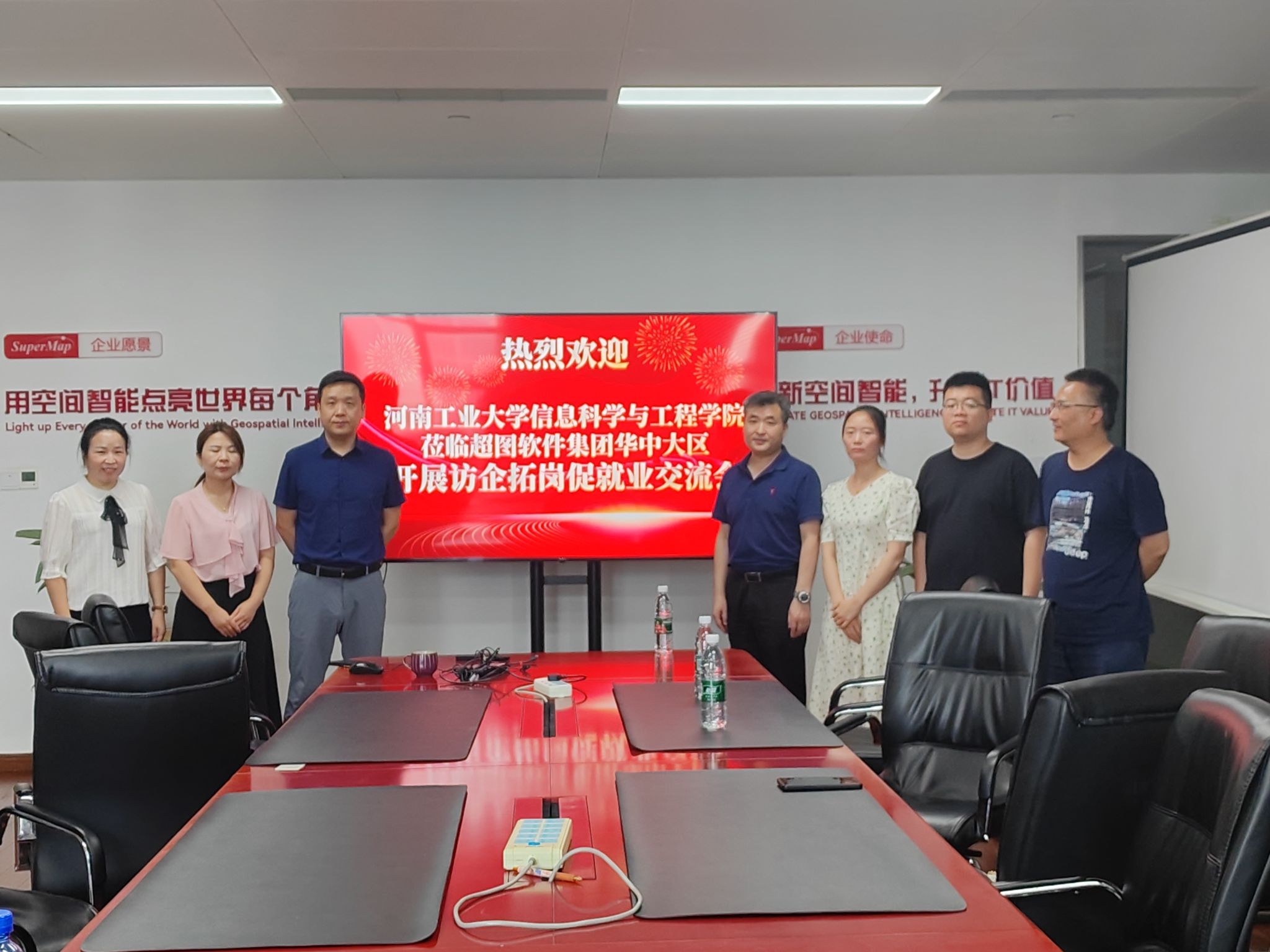 2024年6月28日上午,空间信息与数字技术专业党支部书记李卫东、系主任刘茜茜、段宇乐、教师代表王珂老师等一行4人赴河南超图信息技术有限公司开展“访企拓岗促就业”交流活动。