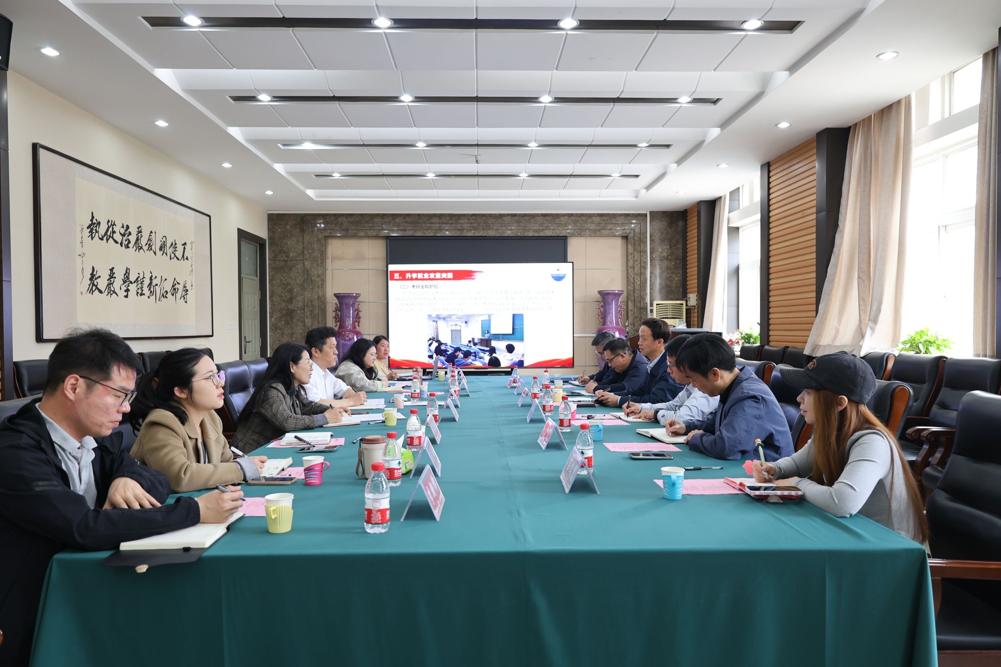 学院党委书记郭晓旻介绍了学院学生工作开展情况,围绕安全稳定、学风建设、创新创业、升学就业、一站式社区建设等五个专题,结合详实数据和实际案例,向调研组做了全面深入的汇报。院长从人才培养体系、科技创新、就业创业等方面,着重介绍了学院党政协同、全员参与学生工作的举措和成效。与会人员紧紧围绕学工队伍建设、学风建设、学生科创等议题展开深入交流。
