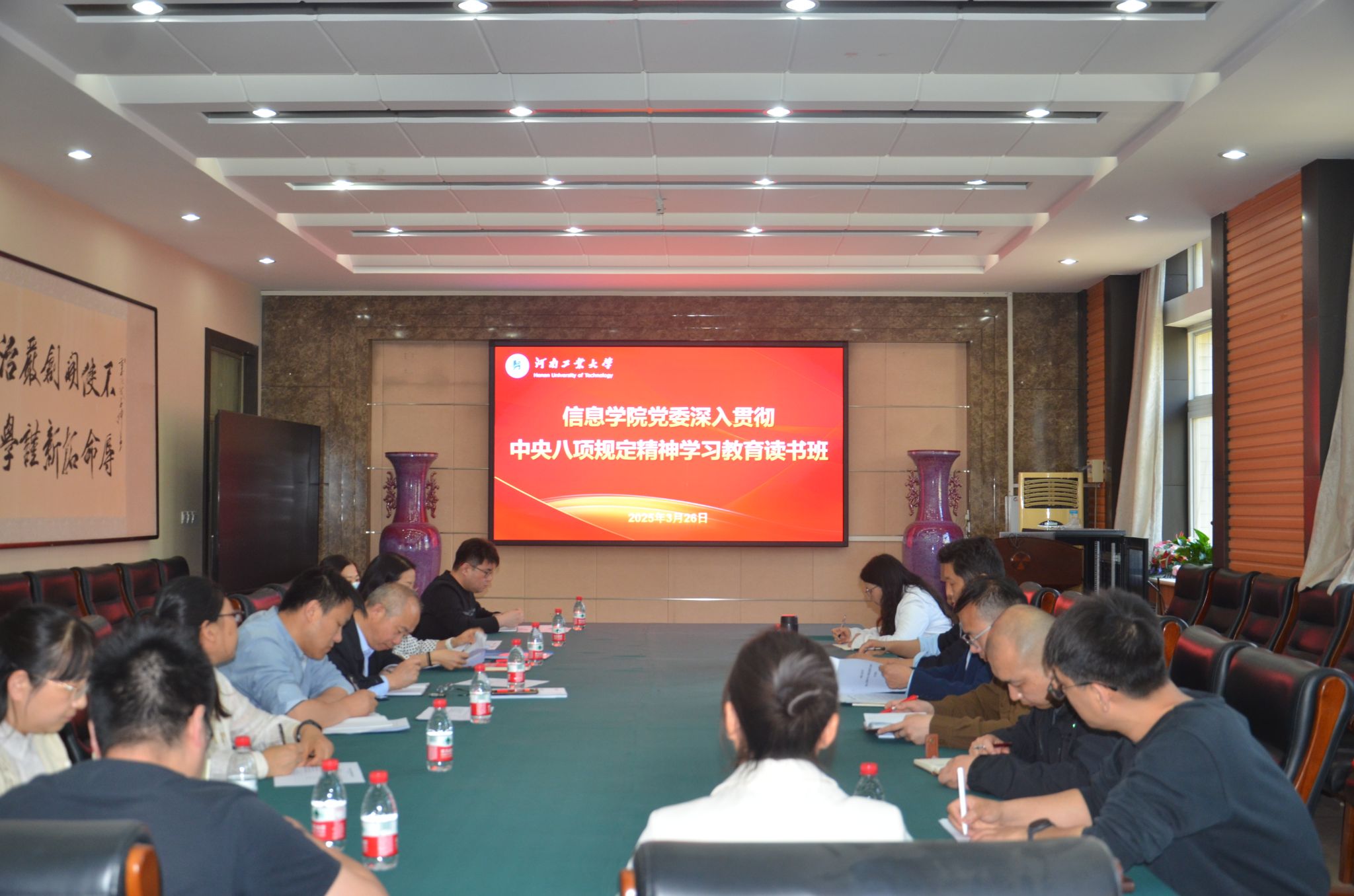 党委在6225会议室开展深入贯彻中央八项规定精神学习教育。学院领导班子成员、各专业负责人参加会议,会议由学院党委书记郭晓旻主持。