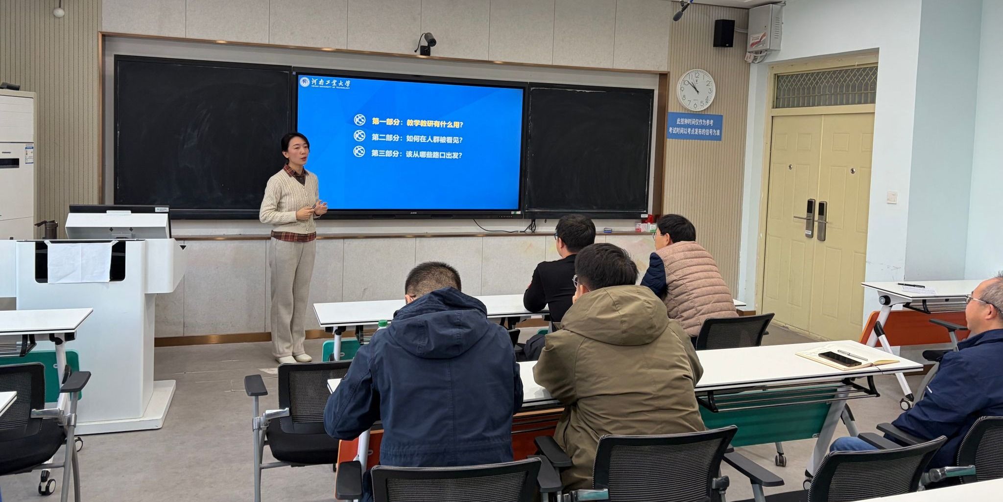 在文科组团楼3204智慧教室举办高效课堂教学示范课观摩活动。本次活动特邀河南省教学创新大赛特等奖获得者、河南省教学标兵、河南省一流本科课程负责人马海华老师主讲示范,学院副院长刘宏月及40余名中青年教师参与观摩学习。