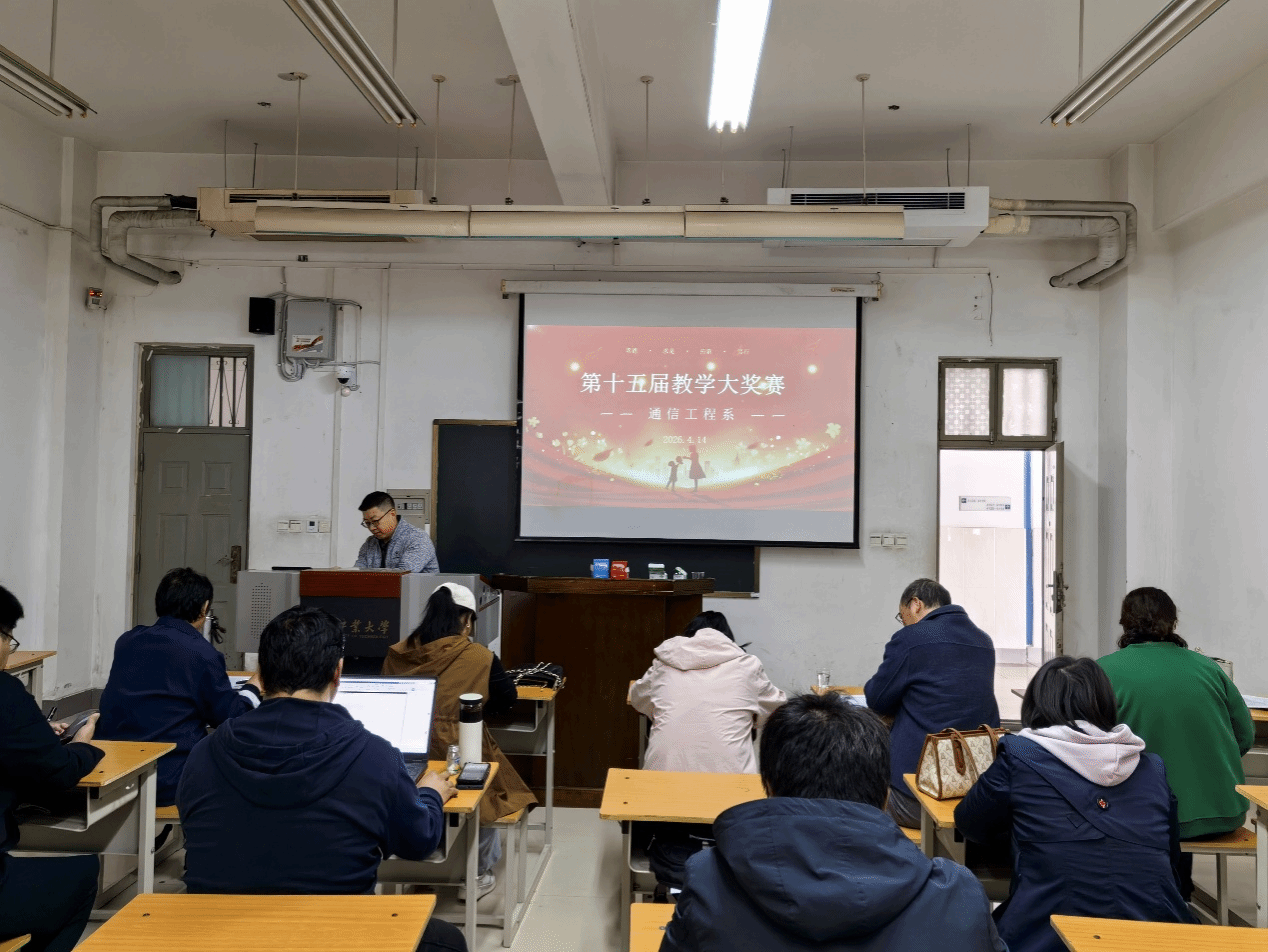 比赛过程分为10分钟的教学创新设计汇报和5分钟的评审专家交流环节。比赛中,参赛教师全情投入,从教学模式研究性改革、课程两性一度特征、课程思政的有机融入、人工智能的灵活应用、课程体系的科学构建等多个方面展示了以学生为中心的教学改革创新成果,他们的精彩讲述充分彰显了通信工程系教师的教学魅力与风采。通信工程系全体教师观摩了这次比赛,参与观摩活动的教师也纷纷表示受益匪浅,将借鉴参赛教师在课程思政融入、人工智能赋能教学等方面的有益探索,进一步优化自身的教学方式。本次比赛不仅是教学能力的比拼,更是教学理念的碰撞与交流,体现了“以赛促教、以赛促学、教学相长”的宗旨,对提升教学质量及教学能力起到了重要推动作用。