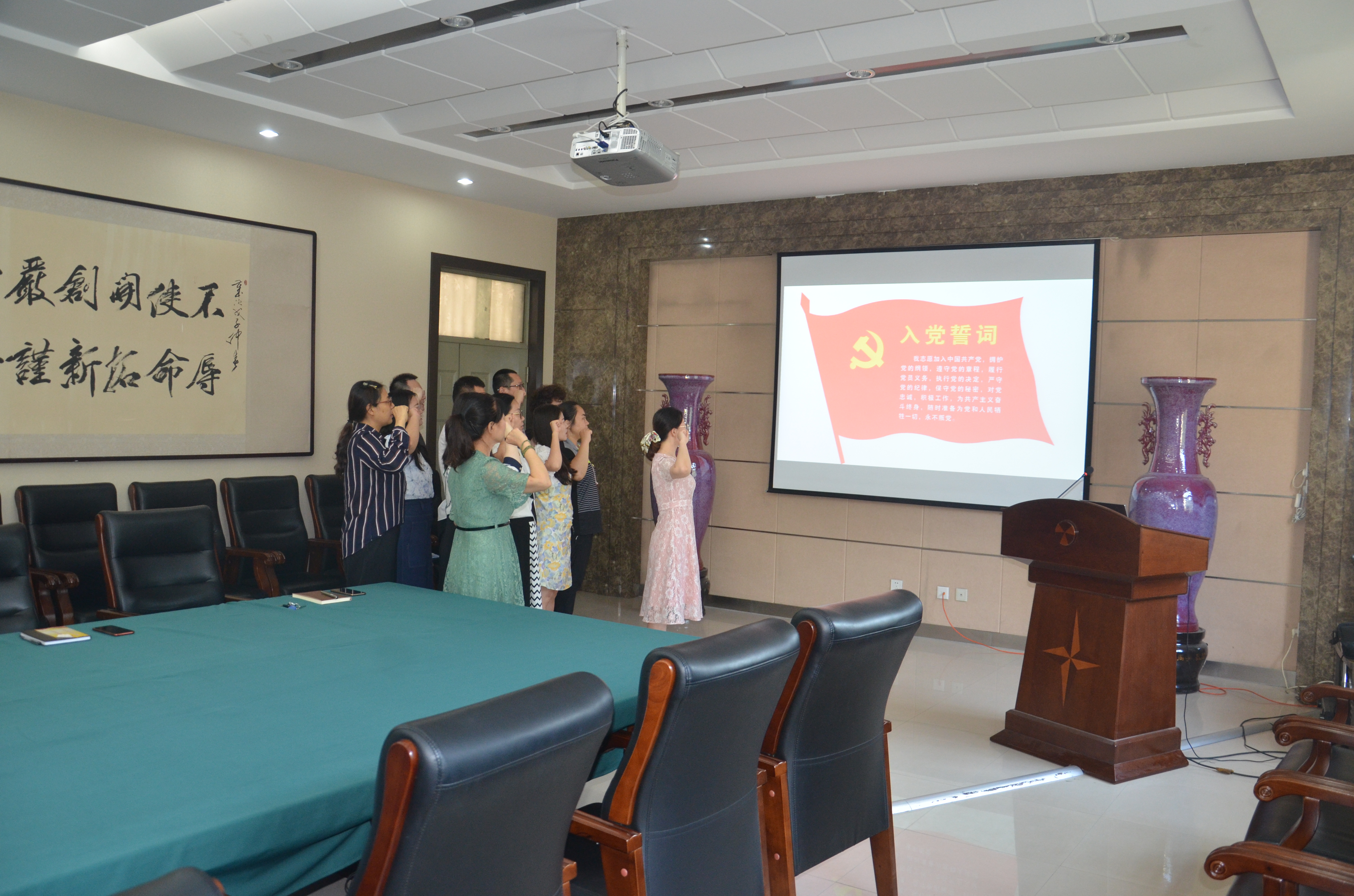 会议伊始,秦瑶带领大家重温入党誓词,“我志愿加入中国共产党,拥护党的纲领……随时准备为党和人民牺牲一切,永不叛党”。铿锵恢宏的誓词,强烈震撼着在场的每一位党员,一字一句,神圣而豪迈。铮铮誓言,体现了党员同志们对中国共产党的无限忠诚,彰显着对党和人民的坚定初心。