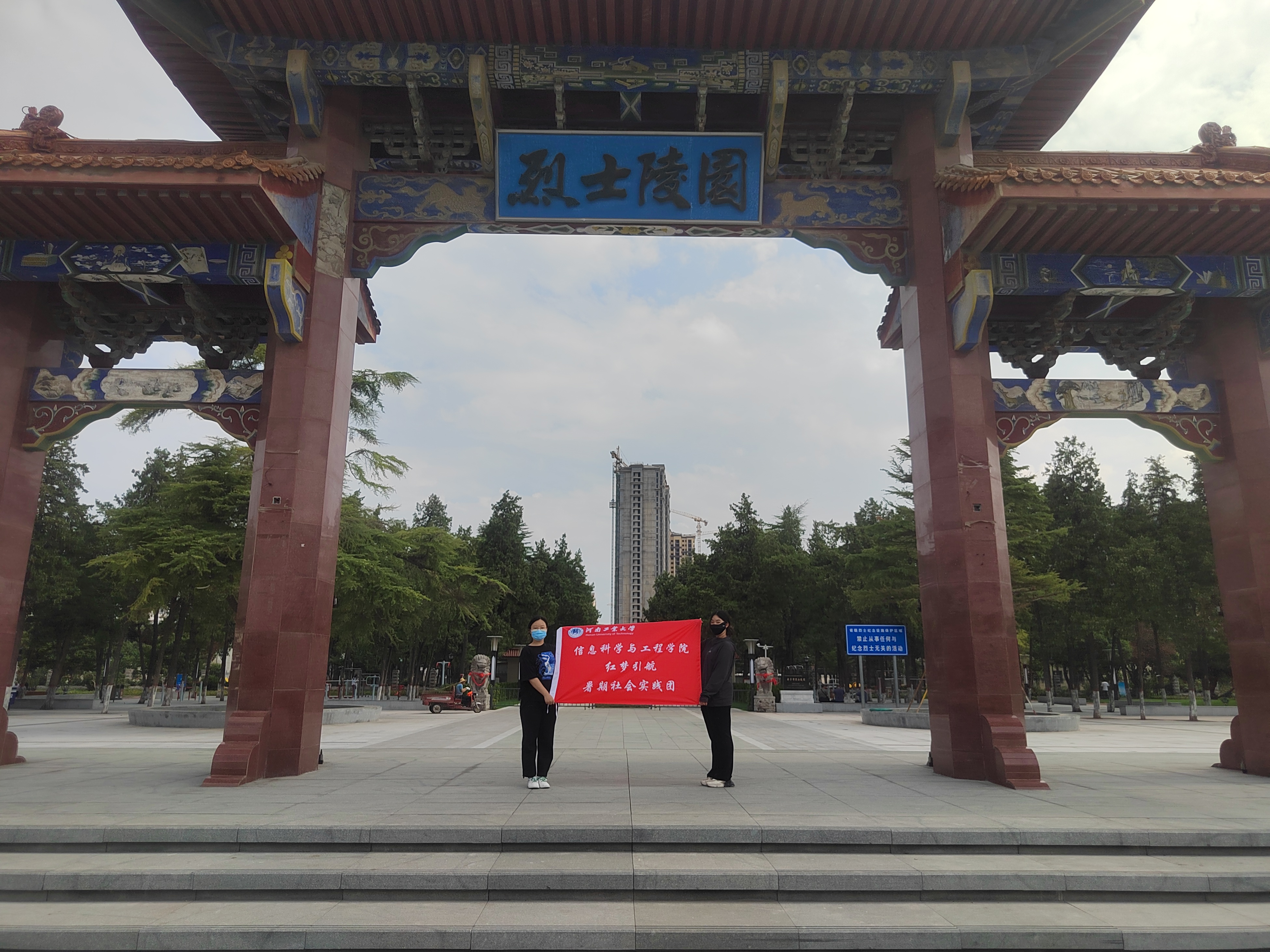 接下来,实践团成员来到陵园门口,一座牌坊显现于眼前,而牌坊的正中位置矗立着烈士纪念碑。站在纪念碑下面,看着上面的纹饰便能联想到浴血奋战的革命先烈们的事迹:在战火的硝烟中前仆后继的战士,在新中国建设中忘我工作的劳动者等等。成员深深体会着这次参观受到的洗礼和震撼。那些名字被刻在纪念碑上的革命先烈的一生,是英雄的一生,光辉的一生,他们给人民留下了宝贵的精神财富。成员们深切地感到,在革命先烈的奉献精神的鼓舞下,我国几代优秀的中华儿女奋力拼搏、无私奉献,为新中国的崛起、为中华民族的伟大复兴发挥了巨大的作用。