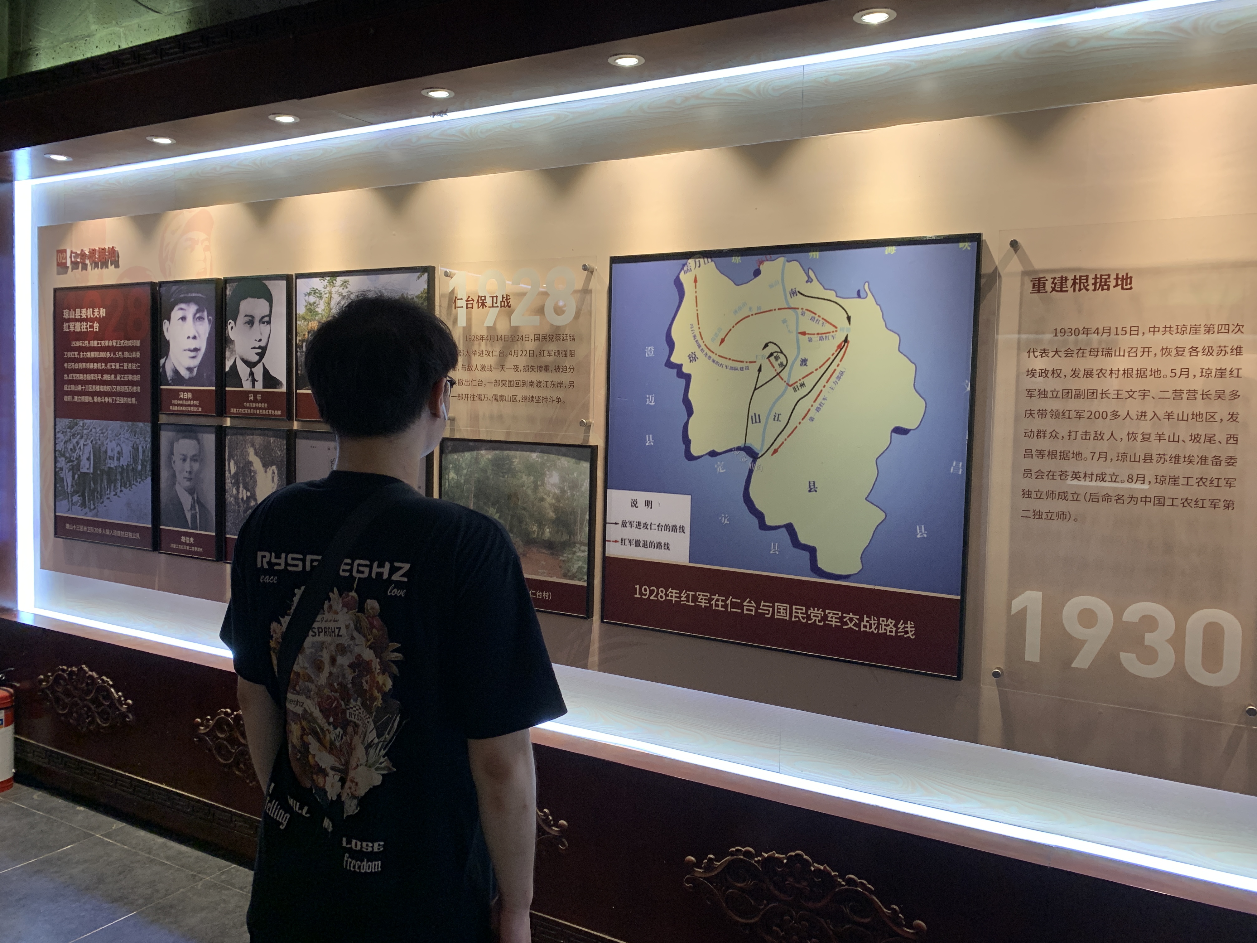 进入正厅,正中为国共抗战时期大战役纪念时间,整幅图详细地描绘了1928年的仁台保卫战和1930重建根据地,给人以剧烈震撼,深深体会到了当时革命战士们的有勇有谋,奋不顾身。