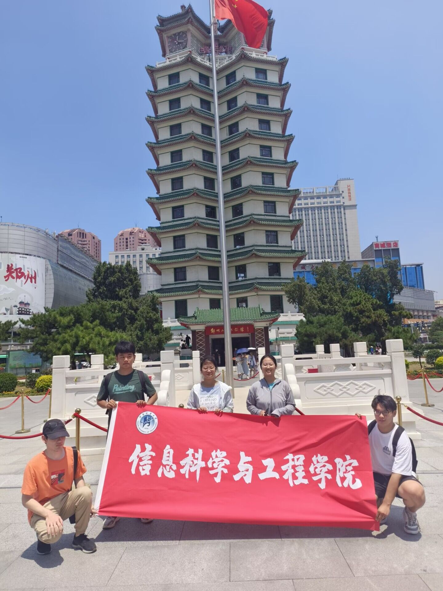 图一 全体队员在二七纪念塔前合影