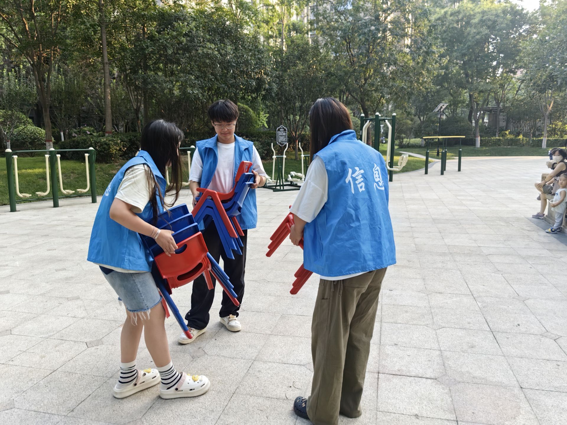 志愿者们早早到达社区,提前准备好活动材料并且整理布置了现场的比赛环境。
