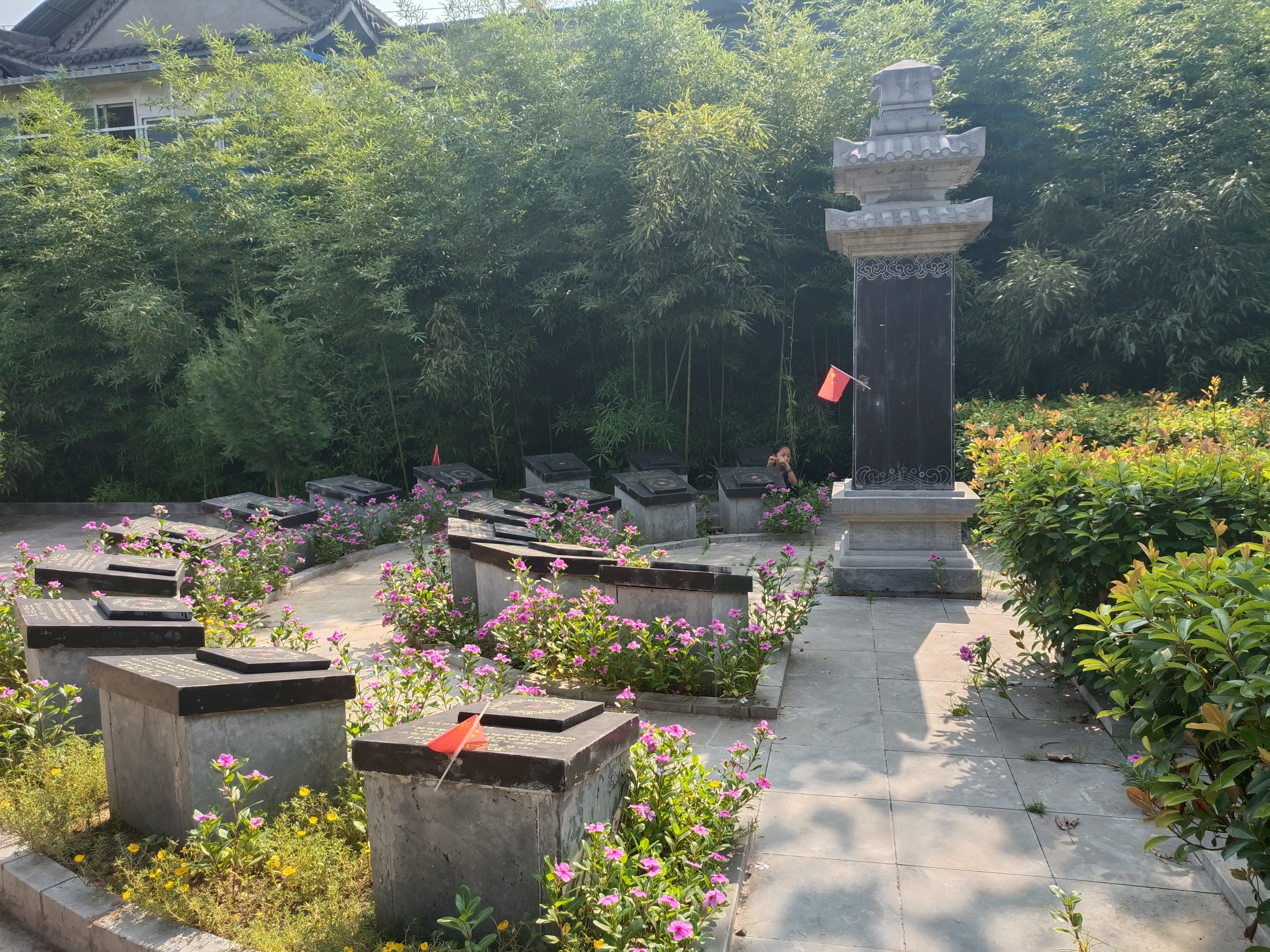 回顾历史,不忘党史。8月5日下午,团队成员乘坐大巴回到万古镇,参观河南省安阳市滑县万古镇的陵园:冀鲁豫区四分区烈士陵园。1944年,为悼念胡乃超烈士和七年抗战中的殉国英灵,冀鲁豫军区领导决定修建第四分区烈士陵园。该陵园坐南向北,总占地80亩,院内13亩建有烈士享迹陈列楼16间,主墓为胡乃超烈士墓,先后埋葬连级烈士公墓地埋葬烈士数百名,后因部分烈士墓迁移,园内现有墓塚18座。2016年被河南省人民政府公布为第七批河南省重点文物保护单位。