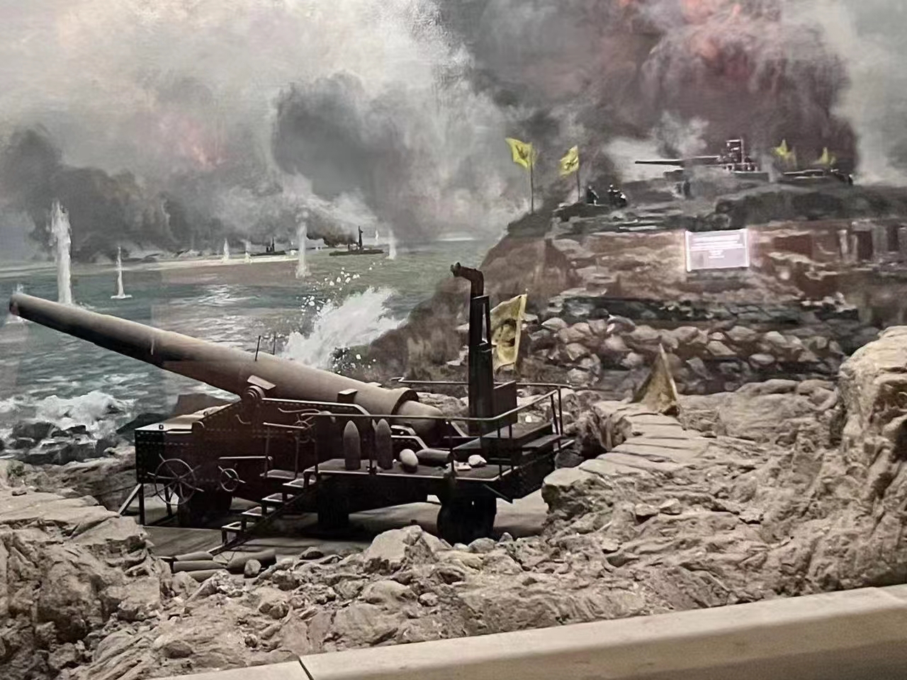 随后队员们参观博物馆内部,陈列了许多当时的各种武器以及各种珍贵的历史资料。有许多栩栩如生的人物蜡像,有的高举着旗帜,表情凝重;有的低着头,手里忙着打着绳结;有的人手里拿着笔,正在奋笔疾书。从启衅朝鲜半岛到黄海大海战,再到鏖战辽东半岛、决战山东半岛、马关谈判、割台剜心之痛、中国痛失主权、国民惨遭凌虐……一件件一桩桩都像是锋利的匕首深深地划在队员们的心上。