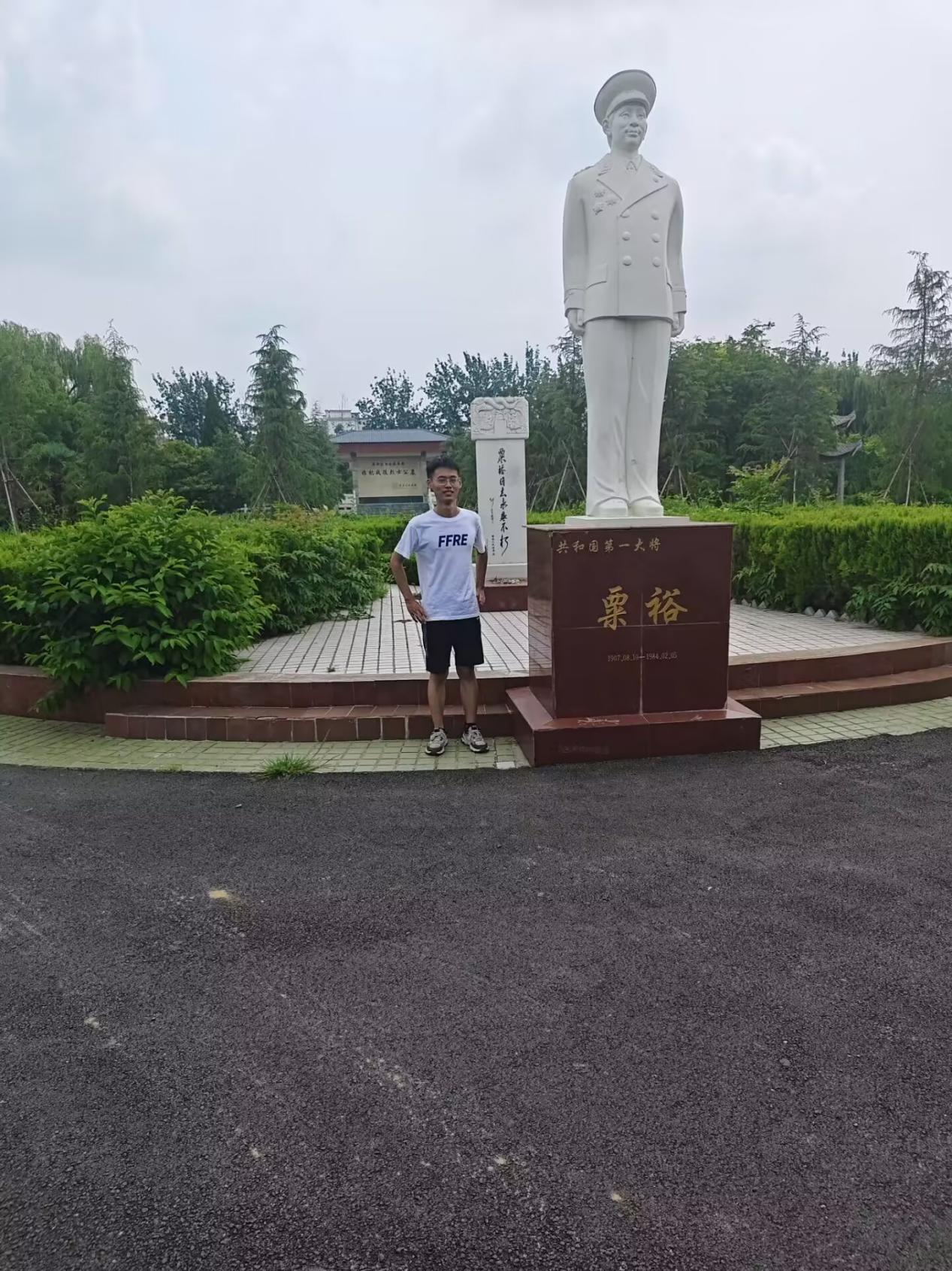 图二 团队成员与粟裕将军塑像合影