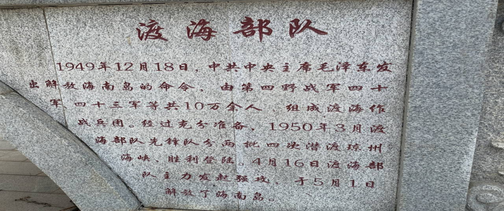 进入园内,看到的是渡海部队一大墓碑,1949年12月18日,毛泽东主席向中国人民解放军第四野战军发出准备渡海作战,解放海南岛的命令。1950年,在琼崖纵队和全岛人民的大力接应、配合下,渡海作战部队先于3月初至4月初分两批四次潜渡琼州海峡,胜利登陆,增加岛上接应力量,然后于4月16日发起大规模渡海强攻,23日解放海口市,乘胜追击,于5月1日,解放海南岛。在解放海南战役中,我军共歼敌3.3万余人,但也付出了巨大的代价,伤亡4500余人。感受到了沉重的使命感。