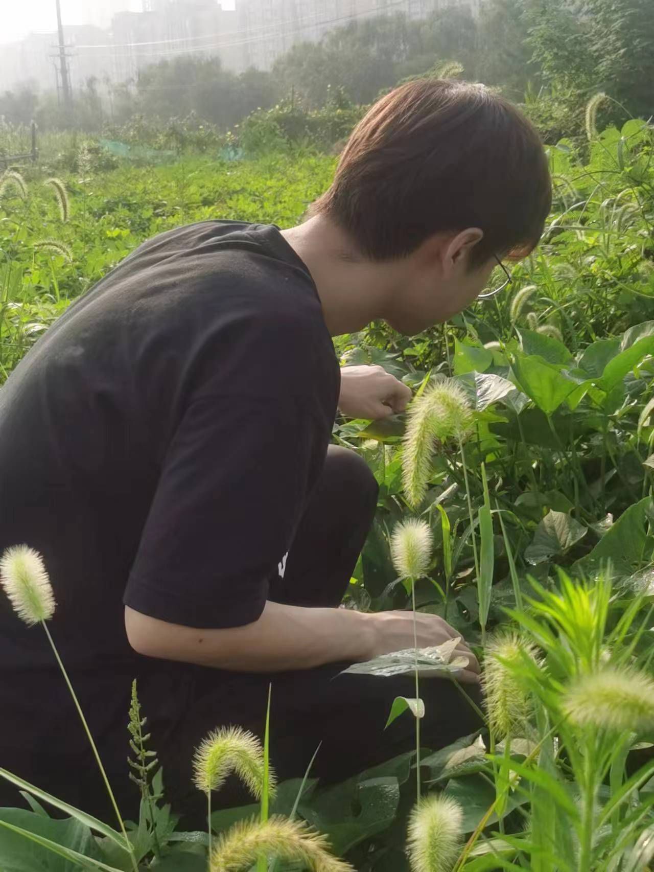 图四 实践小组在农学基地观察