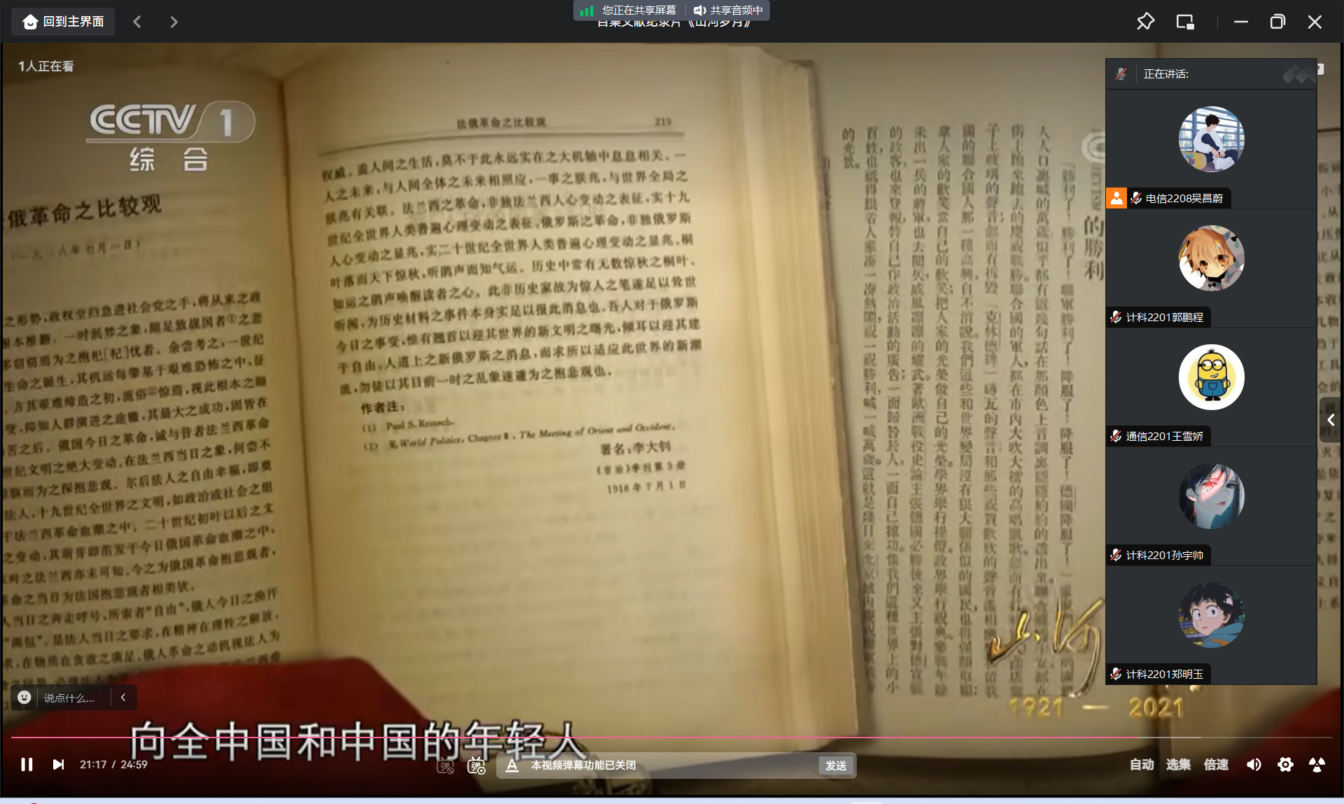 8月18日上午,实践团进行了线上学习,实践团全体成员一同观看了纪录片:《山河岁月》。《生如夏花》一集,讲述建党初期一批女共产党人的故事,如葛健豪、向警予、蔡畅等,她们也是解放中国的先驱。《民族魂》一集,讲述鲁迅先生与中国共产党人的亲密交往。还有《怒吼吧黄河》、《五月的鲜花》《可爱的中国》等等,耳熟能详又充满诗意……其中一位实践团成员感慨道:“作为一名中国人,应该牢记历史,祖国的今天是通过千千万万具有理想抱负的共产党人通过鲜血换取而来的,那些为了解放全中国人类的伟大先烈们,那不怕牺牲的精神,敢干拼搏敢干与恶势力斗争,这可贵的精神是值得追随的。”
