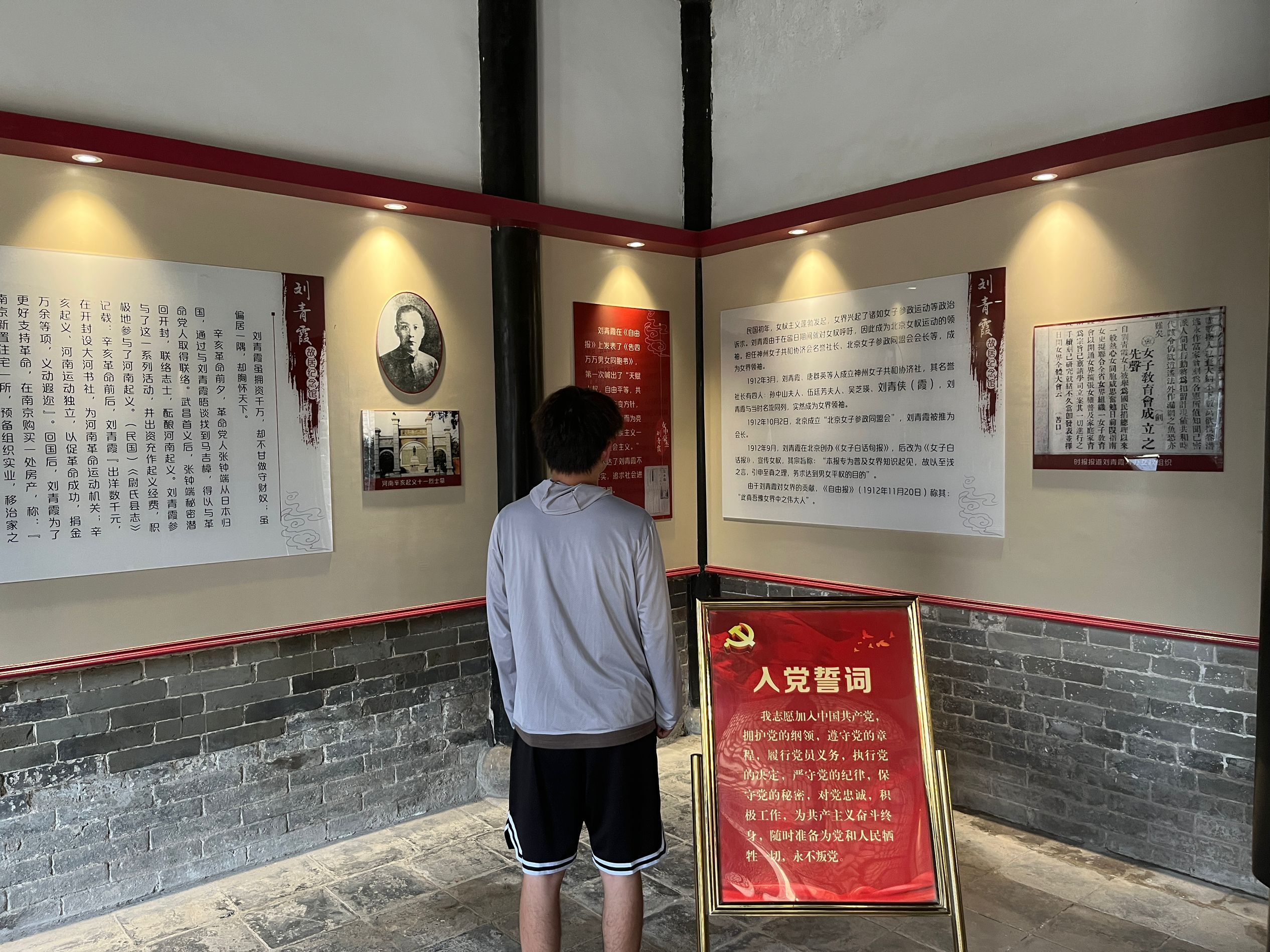 2023年8月16日上午,“开杞征程”实践团首先前往刘青霞故居纪念馆参观学习,追忆和缅怀刘青霞女士投身革命、奉献自我的一生。实践团认真参观了这座建于清光绪六年的典型北方四合院式建筑,详细了解了“巾帼英雄”刘青霞女士的传奇经历。夏日炎炎,但挡不住实践团成员学习的热情,都被刘青霞女士这种矢志不渝的革命精神深深感动。纷纷表示,要坚定理想信念,牢记初心使命。