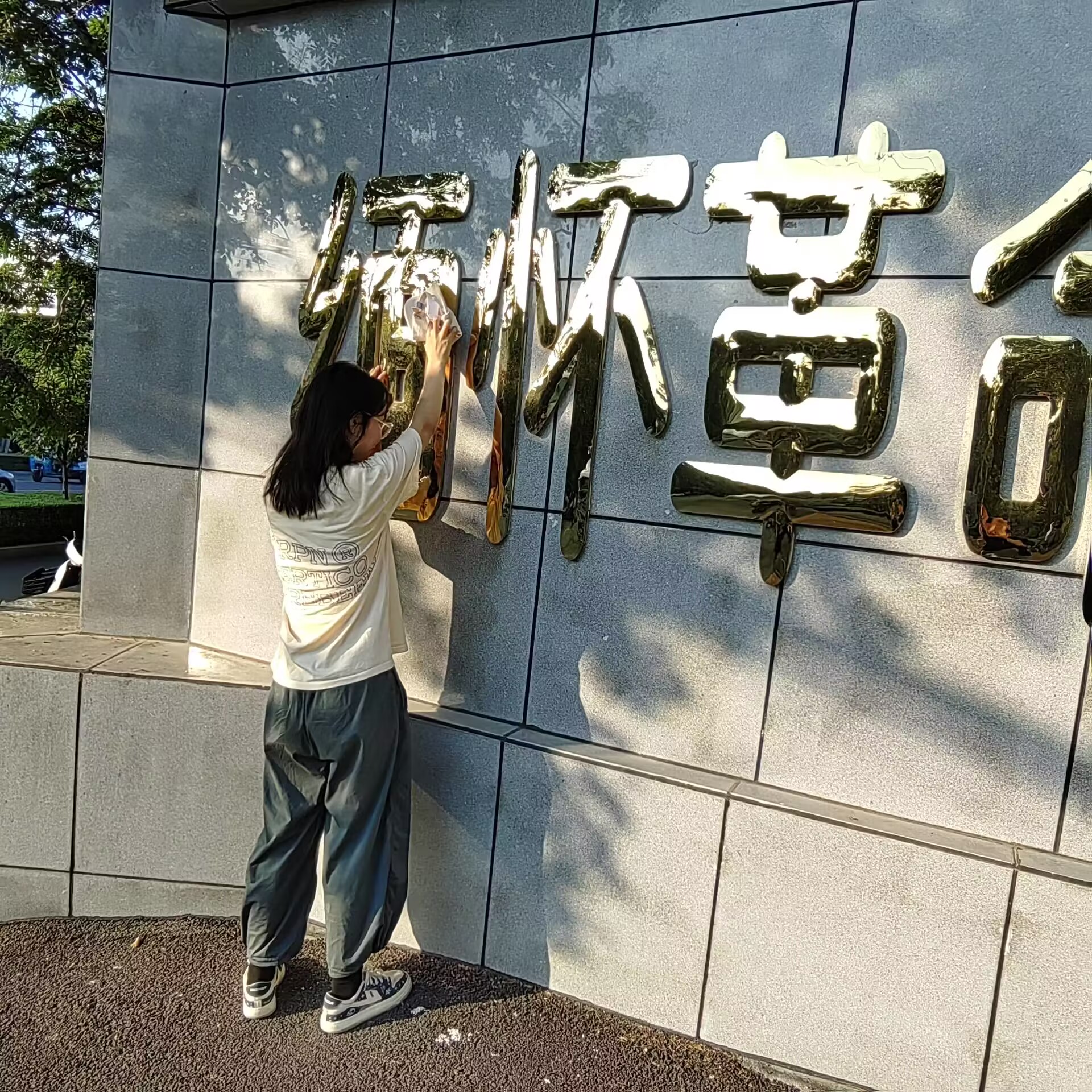 下午,实践团到达禹州烈士陵园,首先映入眼帘的是:“缅怀革命先烈”的六个大字,格外醒目,让成员对其心生敬畏感,由于长期的风吹日晒,园里也有些许落叶,“缅怀革命先烈”六个大字也有尘土附着,实践团成员仔细打扫着落叶,认真擦拭着庄严神圣的六个字。