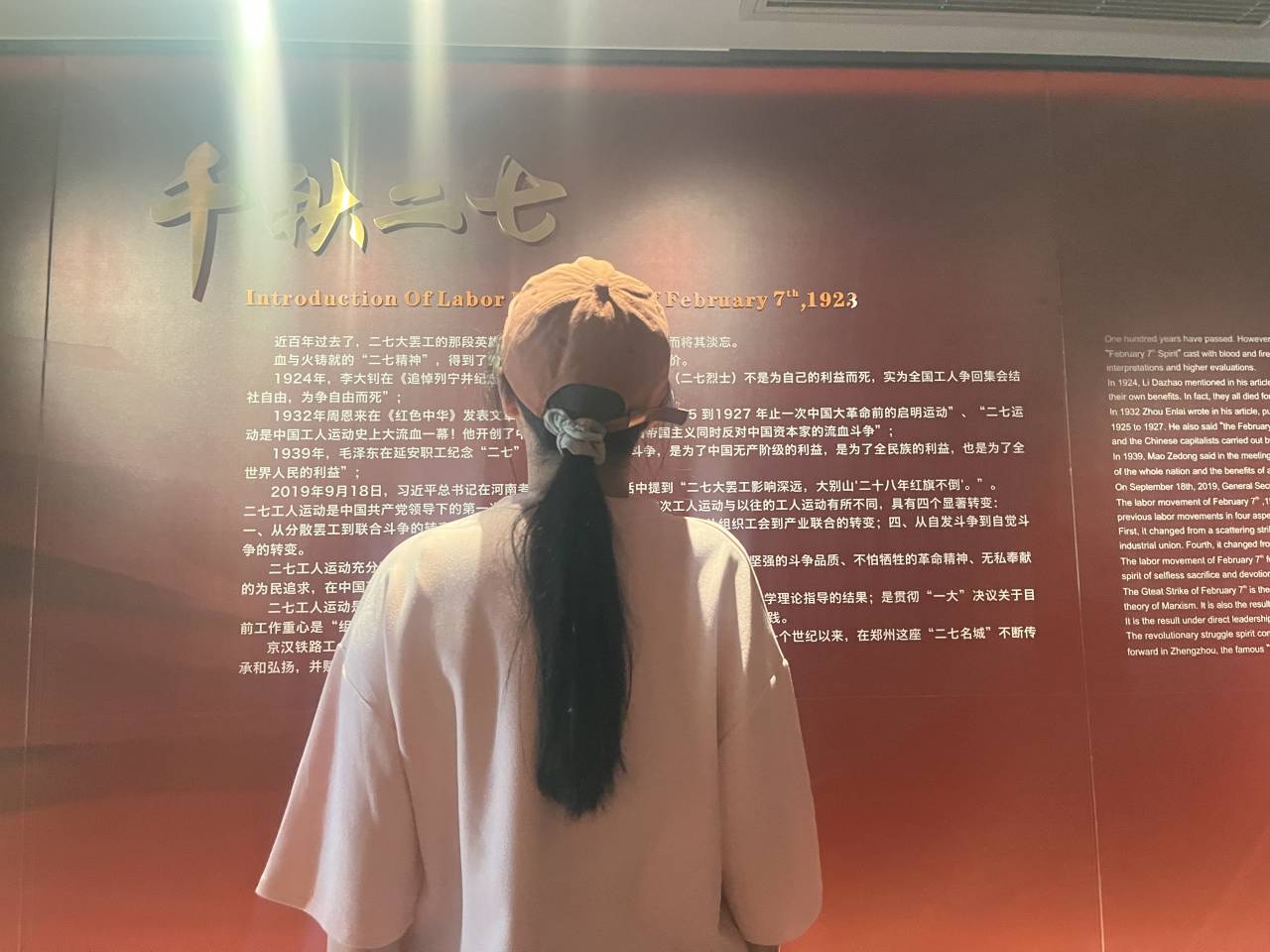 2023年8月17日,活动第一天,部分团队成员们来到了郑州市二七纪念堂进行参观学习,参观了展馆内的文物、图片等展品,身临其境感受当时党和人民开展各种革命活动的历史场景;2023年8月18日,活动第二天,成员们来到了郑州市二七纪念塔参观学习,对基地内相关路人进行线下采访,从多角度了解了先烈们的事迹;登上塔顶,俯瞰城市美景,欣赏高楼大厦和繁忙的街道,队员们深切感受到了中国共产党的伟大和中国革命的艰辛。参观展览厅,了解二七塔的建造过程和革命历史,通过珍贵文物和历史照片,深入了解中国革命的历史。2023年8月19日,活动第三天,全体成员们采用腾讯会议线上连线的方式,组织一起观看学习了红色影片,了解了更多的红色精神内涵。
