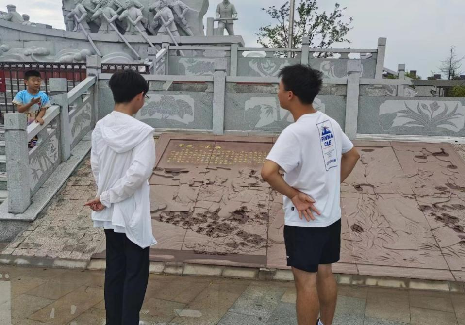 上午8时,实践团队来到了胜利广场,映入眼帘的是一座巍然屹立的刘邓大军渡沙颍河主题雕塑。这次渡河战役发生在民国时期,刘邓联军是由中国共产党领导的一支革命军队,当时正与国民党政权进行斗争。胜利的战役中刘邓联军需要渡过沙颍河,以继续向国民党势力渗透。渡河战役对刘邓联军后来的行动起到了重要的推动作用,成功地扩大了他们在河南地区的影响力,为他们的革命事业奠定了坚实的基础。