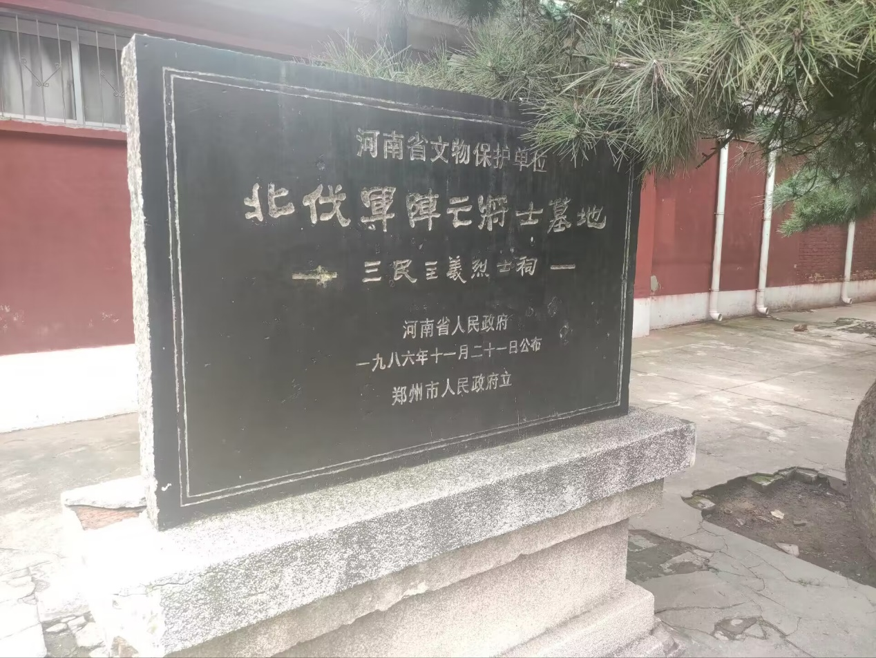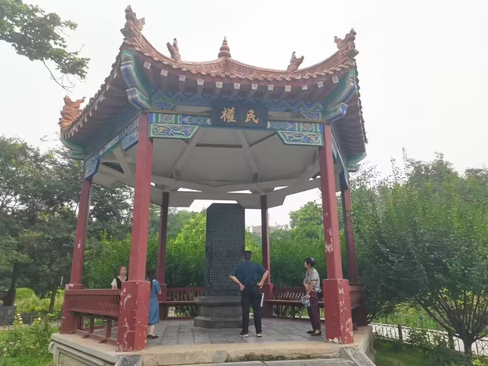 民族亭内有象征着民族脊梁的“碧血丹心”石碑,碑后还保存着当年冯玉祥将军亲自撰写的北伐檄文,文章慷慨激昂,情真意切。队员们在读到民族危亡之时仿佛重现了血雨腥风的战争岁月,北伐将士为了人民的幸福生活,不惜抛头颅,洒热血的场景。民权亭位于民族亭东侧,亭内立有刻于1928年8月的缅怀北伐烈士纪念碑。民生亭位于民族亭西侧,亭内立有祭北伐阵亡将士郑州公墓文纪念碑。观看完三民亭纪念碑的碑文后,队员们深切地体会到,今天的幸福生活是先烈们用生命换来的。