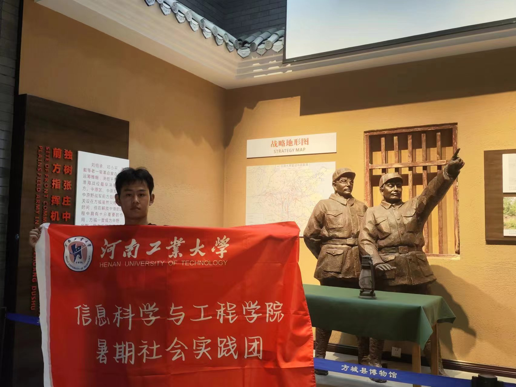 2023年8月1日,为了弘扬爱国主义,培养家国情怀。河南工业大学“青春之歌”红色历史实践团成员来到了方城博物馆参观。