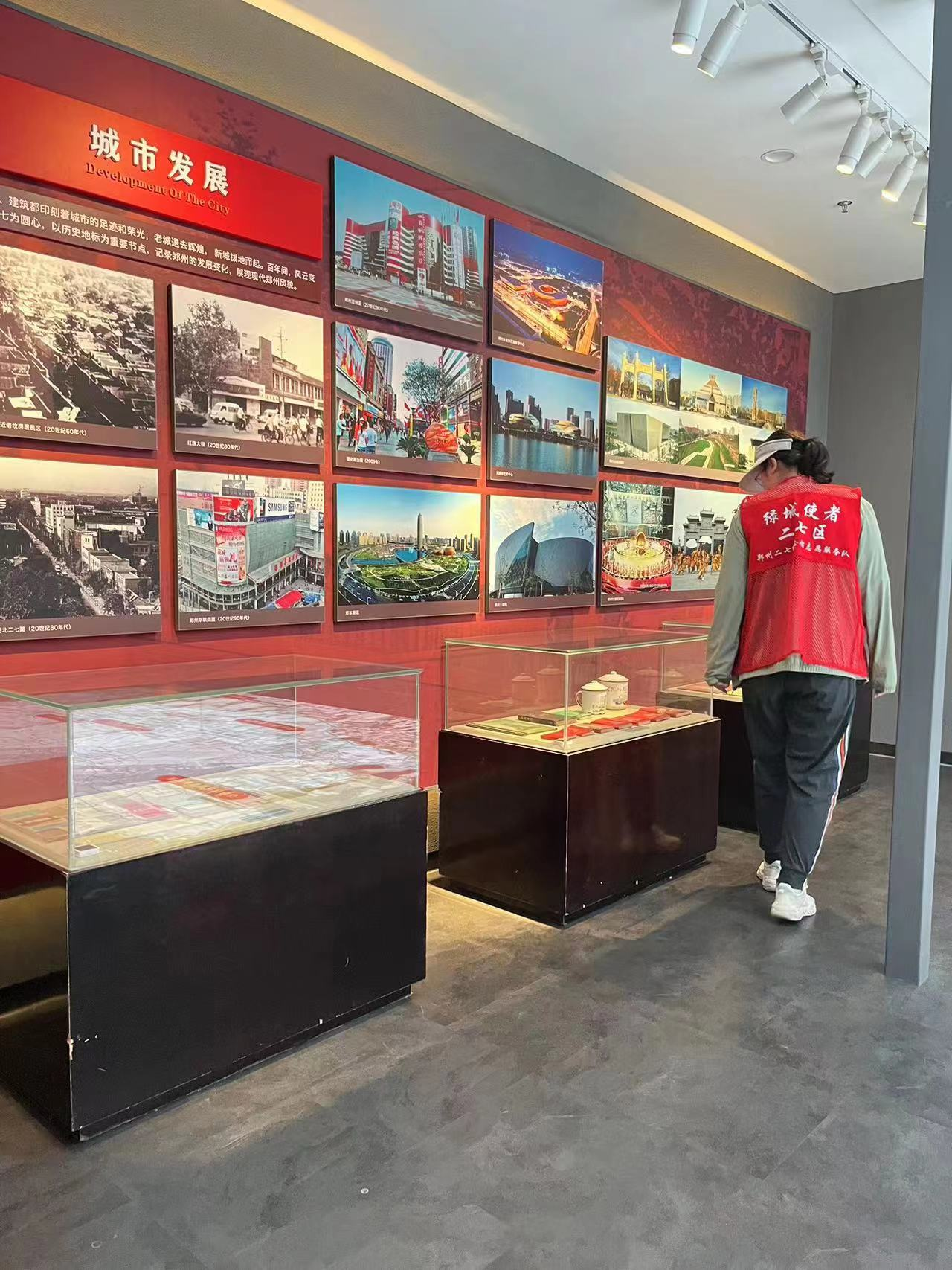 伴随着解说员的讲解,团队成员带着无限缅怀和崇敬,参观了塔内保存的历史文物、图片资料,一起回顾了京汉铁路工人高举罢工斗争的旗帜,同帝国主义和封建军阀进行殊死斗争的英勇事迹,再现了工人阶级在中国共产党的领导下英勇斗争的光辉历程。