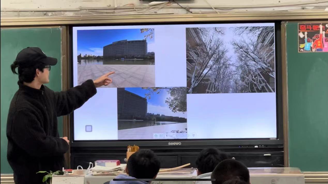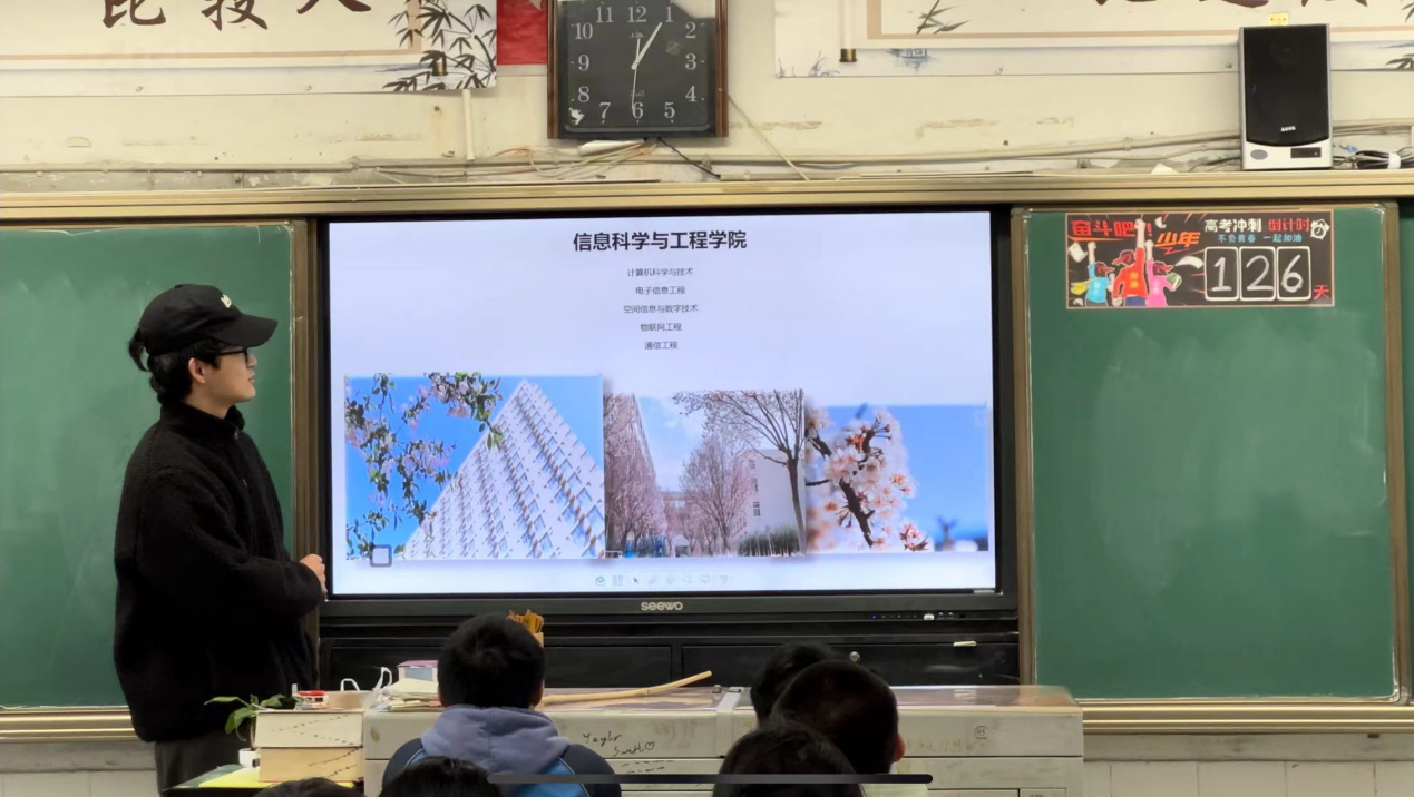 在自贡市第一中学校高三三班的午休时间,刘嘉骏以PPT和视频的形式,宣讲了河南工业大学的综合实力,也借此机会以数据的形式宣讲了探球网