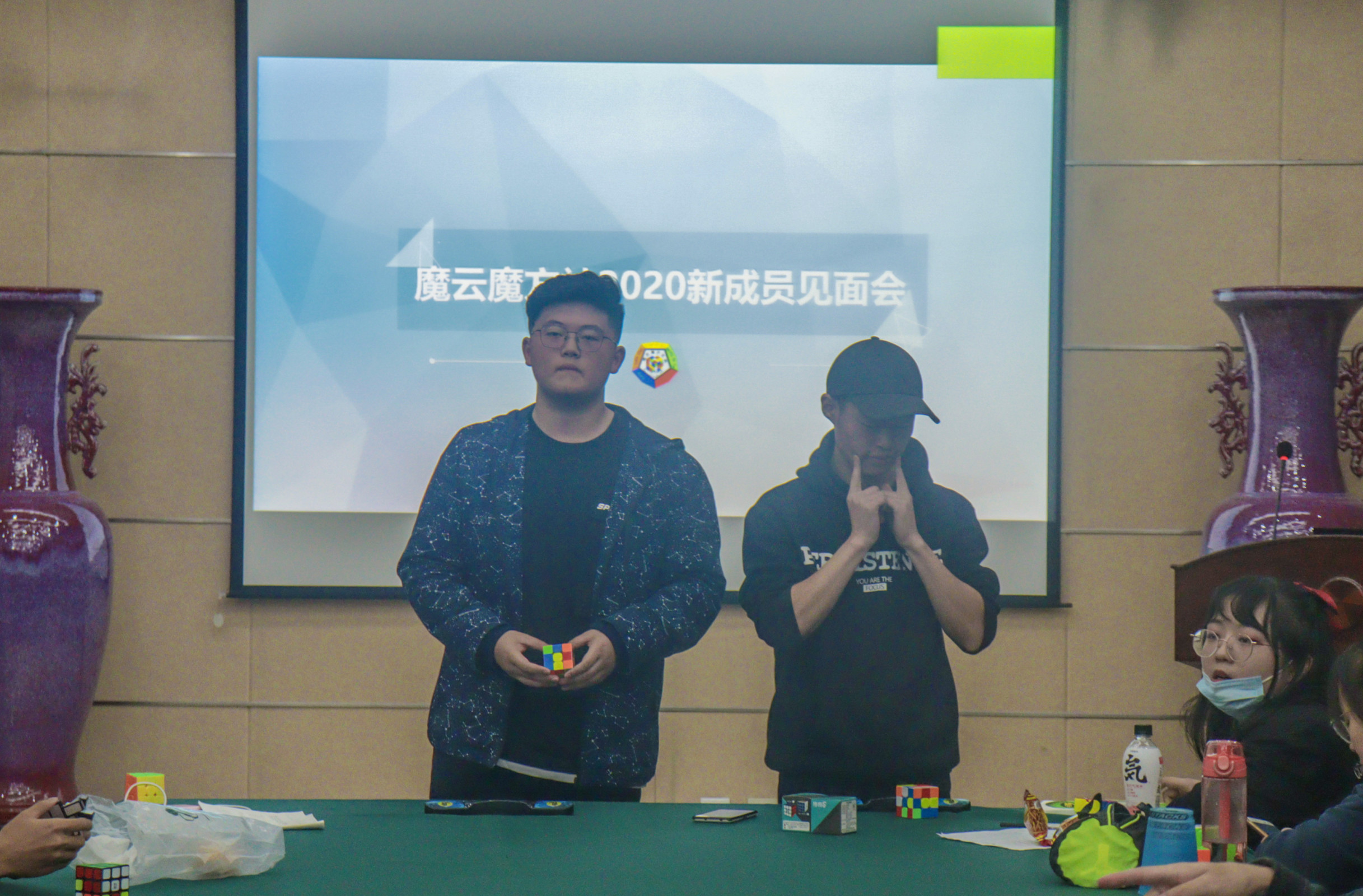 魔云魔方社2020届的新成员与老成员齐聚一堂,在社长的带领下,同学们先进行了简单的暖场游戏进行了气氛的调动。