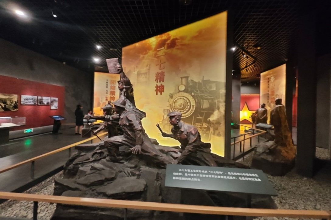 最令印象深刻的是第三部分革命的火焰,这一部分主要讲述的是1923年2月1日京汉铁路总工会在郑州普乐园举行,直系军阀吴佩孚为保障其利益与统治,削弱工人力量,派出军警实施破坏。工人代表不顾危险突破重重封锁,冲进会场,宣告京汉铁路总工会正式成立并决定于1923年2月4日举行全线罢工。其中体现出的二七精神更是让队员们记忆犹新,有个队员说到“直到今天我才切身体会到京汉铁路工人的勇敢以及军阀的残暴,也只有通过展馆内的实物史料才能让我真正理解二七精神中不怕牺牲的精神内核”。二七精神蕴含着深厚的爱国主义情感。当时的工人们不仅为自己争取权益,更是为了整个民族的解放和发展而斗争。这种爱国情怀激发了一代又一代中国人为国家的繁荣富强而努力奋斗。它是一种融合了坚定信念、团结战斗、勇敢无畏、牺牲奉献以及爱国主义等多重元素的综合体,它在中国革命历史上具有重要地位,至今仍激励着中国人民不忘初心,继续前进。