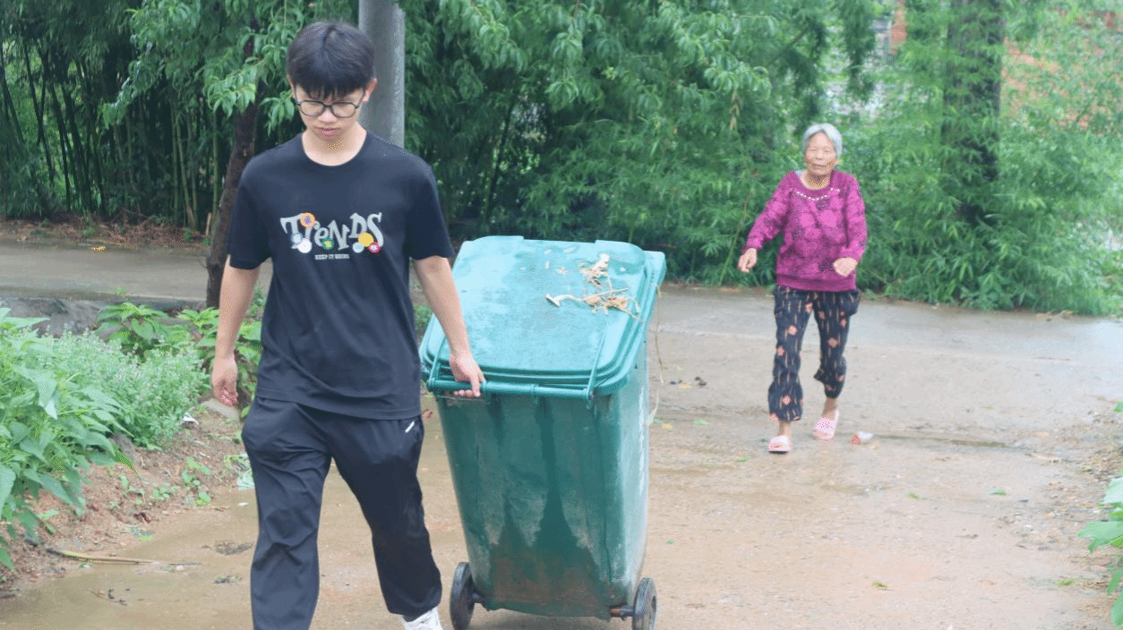 图3 帮助村民清理垃圾桶