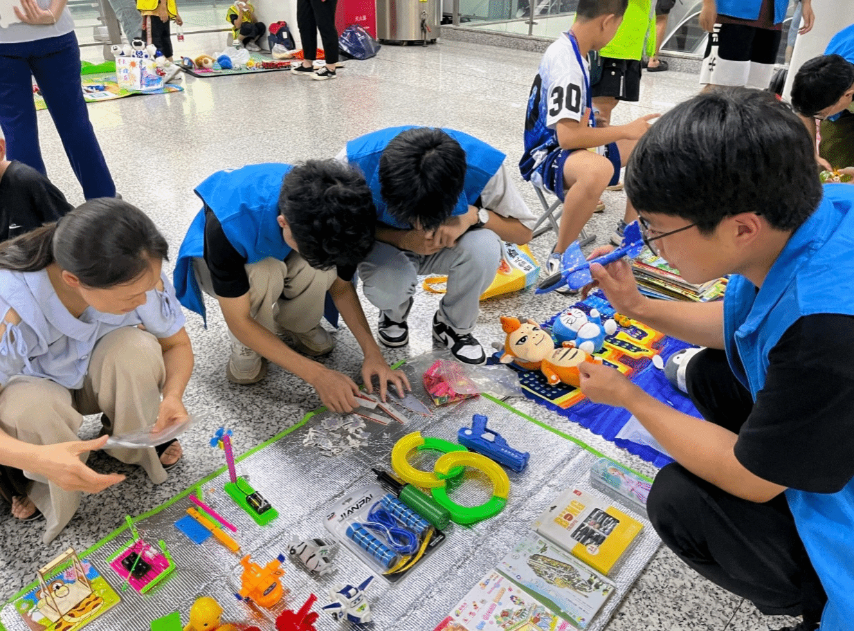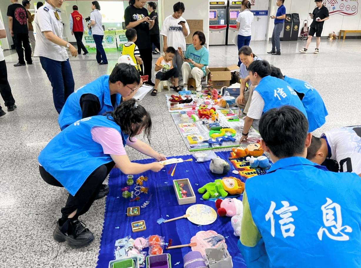 然后,随着“旧物奇遇,绿色市场”活动的正式开展,团队队员们与心智障碍者一同化身为“小小商家”,热情地向来往的乘客介绍着摊位上的二手商品。这些商品种类繁多,从书籍、文具到生活用品,每一件都承载着前主人的记忆与故事。通过交换物品的方式,大家不仅找到了自己心仪的物品,更在无形中传递了环保与节约的理念。而心智障碍者们在参与售卖的过程中,也逐渐学会了与人交流、协商价格等社会技能,他们的脸上洋溢着前所未有的自信与快乐。在团队队员和汇爱社工的鼓励下,他们勇敢地走出自己的舒适区,主动向乘客们推销商品。这一幕幕温馨而感人的画面,让在场的每一个人都深受触动。