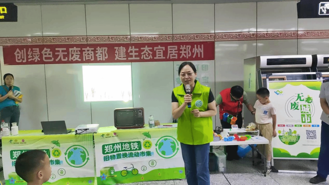 “汇爱筑梦,守望前行”实践小组成员来到了河南省郑州市一号线市体育中心站,参加护童行动,旧物奇遇,绿色市集,支持更多心智障碍者走出家门,与社会互动,并且由河南省生态环境监测和安全中心高级工程师王淑艳授课“无废城市”理念及要求。
