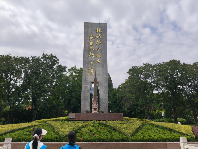 在参观过程中,团队还前往园区的北伐军阵亡将士墓地进行纪念活动。在前往北伐军阵亡将士墓地的路上,团队注意到园内有许多老人正在进行锻炼,也有一些家长带领孩子来了解碧沙岗公园的历史,展现了人们健康积极的生活态度以及当下时代人们对爱国主义教育的重视,同时也与园区本身的纪念意义形成了鲜明的对比。“冯玉祥将军是一位很正直的人,若非在回国的轮船上出了意外,他将会是一位功勋卓著的好将军。”在园内运动的焦先生说。焦先生是碧沙岗公园的“常客”,几乎每天都来园区活动,常为到访的游客和学生讲解公园的历史文化。