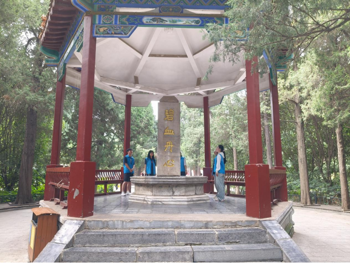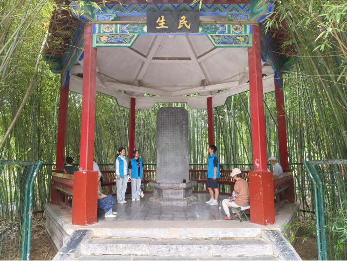 随后,团队前往园区的“三民”亭参观。“三民”亭分为“民族亭”、“民权亭”、“民生亭”三座亭子,每座亭子中央均有详细的纪念碑文。通过解读这些碑文,团队成员们了解了三民主义的历史背景和核心理念,深刻认识到“三民”理念在推动中国社会进步方面的重大作用。这一环节让大家对中国近现代历史的发展脉络有了更加清晰的认识。此亭亦是为秉承伟大革命先驱孙中山先生“革命尚未成功,同志仍需努力”的临终嘱托,由冯玉祥以新三民主义纲领为其命名和修建。