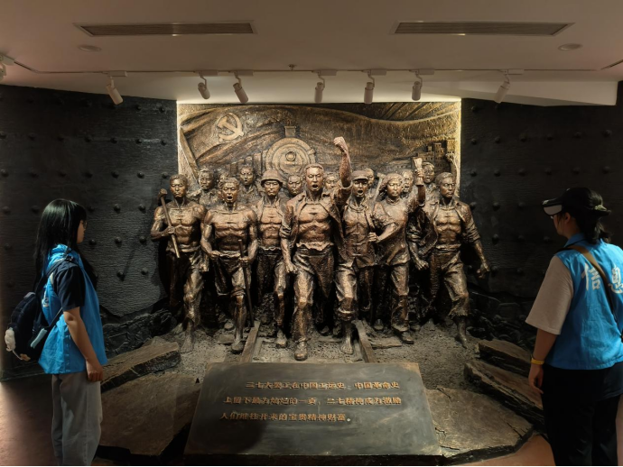 实践团成员们按计划认真参观感受纪念堂内陈列的珍贵照片和历史文物,并对革命先烈敬礼致意。仿佛穿越了历史的长廊,亲眼见证了那段波澜壮阔的工人运动史。纪念堂内的每一件展品、每一幅图片,都无声地诉说着工人阶级的英勇与不屈。