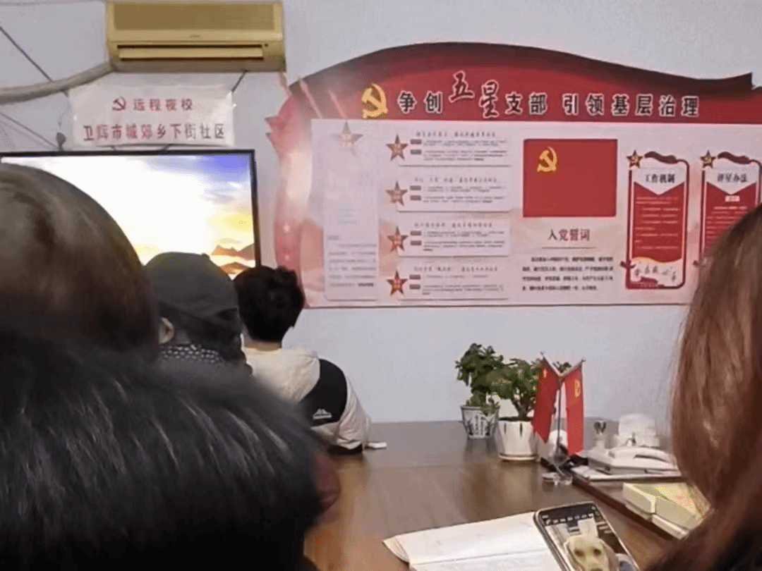 2月7日20时,结束基本工作的卢薇同学,居委会人员收看CCTV1频道节目,在知识与资讯中充实自己。