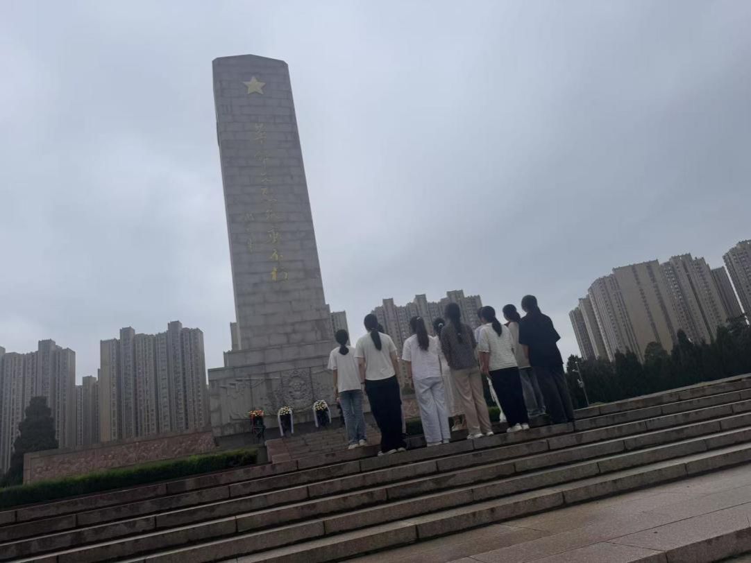 2025年7月5日下午3时,怀着崇敬的心情走进郑州烈士陵园,413亩的园区里,27米高的革命先烈纪念碑格外醒目,站在碑前,仿佛能听见历史的回响,那是英烈们为理想奋斗的呐喊。团队成员首先在27米高的革命先烈纪念碑前集合,手持院旗合影留念。纪念碑正面周恩来总理“革命先烈永垂不朽”的题词庄严肃穆,让团队成员瞬间感受到浓厚的历史氛围和对英烈的崇高敬意。