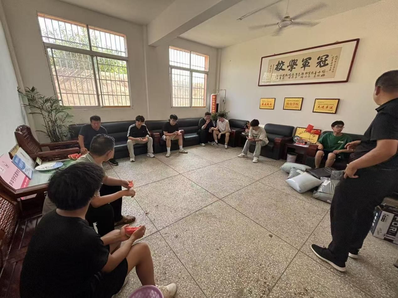 7月15日下午4时,常书记带领团队入住冠军小学,带领他们参观学校,介绍冠军小学的历史。而对于这个要生活一周的地方,团队成员只能从零开始。在基本了解情况后,冠军小学张锋校长、张渊老师与实践队长远明威及其他队员进行了一些工作、生活等方面的沟通交流,确保实践活动能够积极高效展开,同时确定整个下乡活动的流程安排——7月16日至7月18日,开展为期三天的“Scratch编程教学”活动。旨在激发学生的思维逻辑,埋下一颗编程的种子;7月19日至7月20日,进行冠军村相关地图专业绘制。在其余时间里,开展走访、劳动等活动。