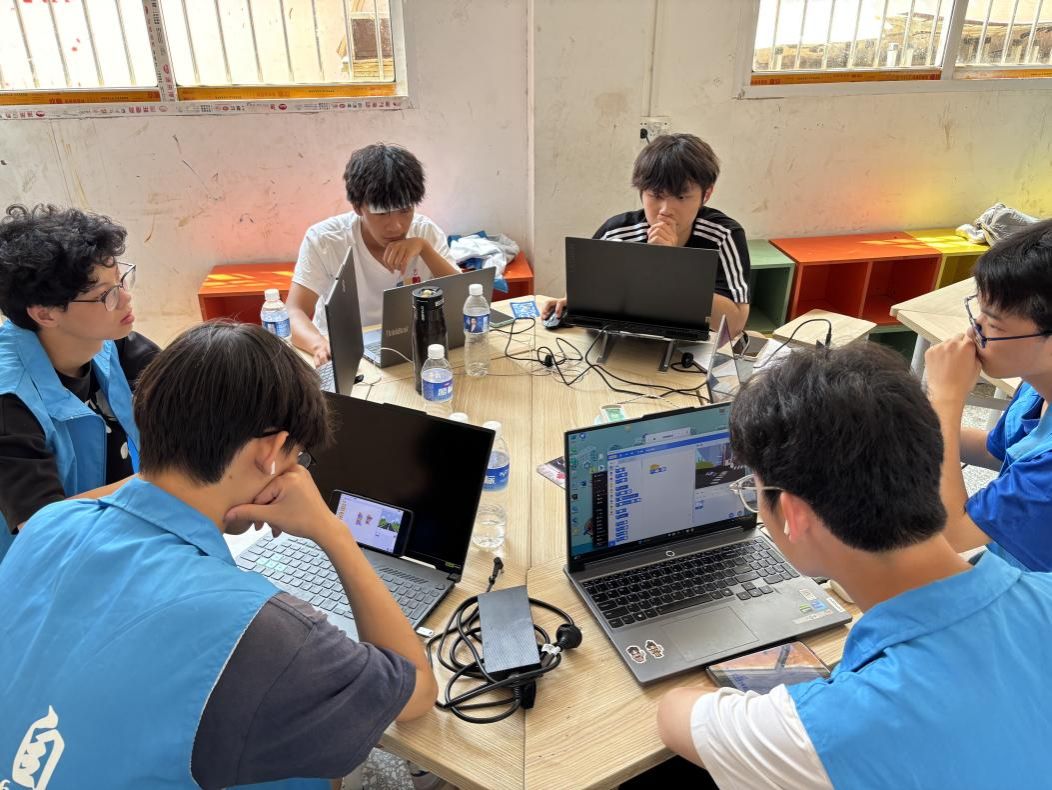 “青春赋能基层携手振兴冠军”实践团队开始了一天的支教准备工作。为保障暑期少儿编程支教活动顺利开展,团队围绕教学安排、任务分工及安全保障等事宜有序推进各项工作,用实际行动为乡村儿童带来别样的暑期编程体验。