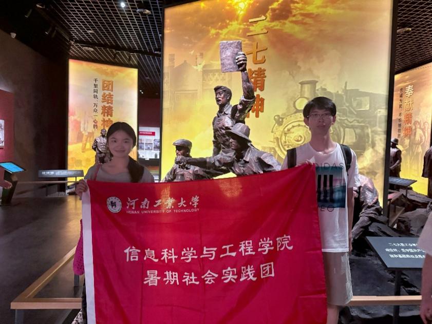 2025年7月24日上午9时30分,河南工业大学信息与工程学院“星火接力,丹心筑梦”暑假社会实践团前往郑州市二七纪念堂,开展以“追溯红色历史,传承革命精神”为主题的社会实践活动,旨在通过实地探访,加深对中国工人运动历史的理解,凝聚青年担当力量。
