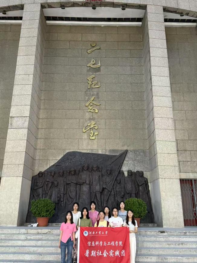 “飞扬青春实践队”社会实践团一行9人赴郑州市二七广场二七纪念塔开展“致敬二七英烈,传承红色基因”主题社会实践活动。同学们高举院旗,在塔前庄严列队,通过沉浸式参观、微宣讲、互动问答等形式,深刻体悟“二七精神”的时代价值,上了一堂别开生面的“大思政课”。