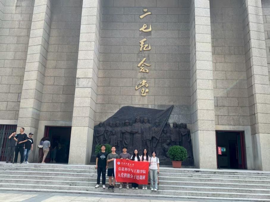 7月22日下午14时30分,实践团首先来到二七纪念堂。这座为纪念京汉铁路工人运动而建的纪念堂,以其厚重的历史底蕴和庄严的氛围深深吸引了队员们的目光。在“千秋二七”红墙前,队员们驻足凝视,那段英雄历史仿佛穿越时空,震撼着每个人的心灵。通过参观“铁路修建”“革命烈焰”等展区,队员们不仅了解了二七大罢工的历史背景,更切身感受到了二七精神中不怕牺牲、甘于奉献的精神内核,这种精神力量深深烙印在每位队员的心中。