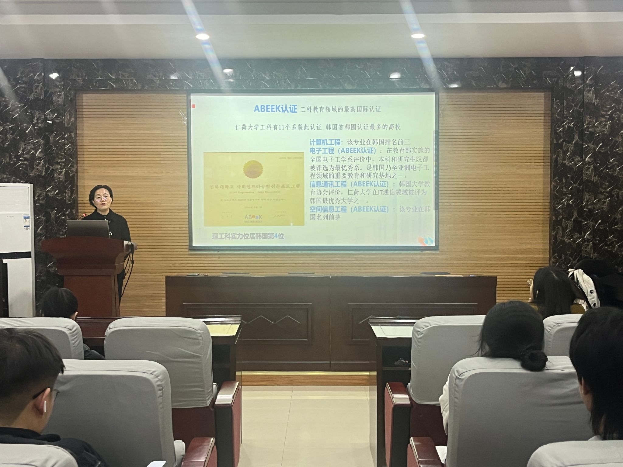 在6228会议室举办了应届毕业生出国留学政策宣讲会。毕业班辅导员以及有意向出国留学的毕业生参加了此次活动,会议由韩国仁荷大学国际教育中国中心张素文老师主讲,毕业生辅导员王璐主持。
