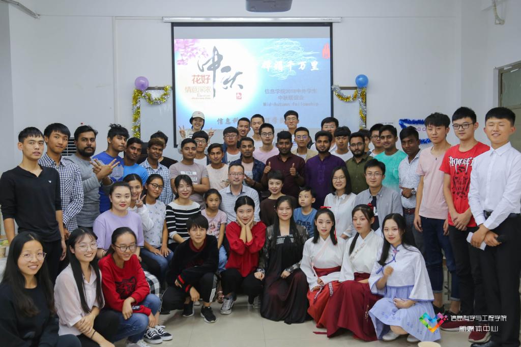 中外学生中秋联谊会”活动在6101教室欢乐开启。学院党委副书记钟月双、副院长邓淼磊、团委书记梁艳、国际交流与合作办公室秘书乔丽红等老师与学院各国留学生、本科生代表欢聚一堂,共同欢度中秋佳节。