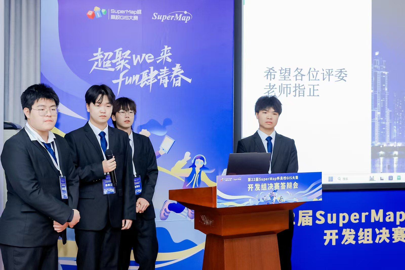 12月8日,由中国地理学会、中国地理信息产业协会主办的第二十二届SuperMap杯全国高校GIS(空间信息与数字技术专业地理信息系统技术)大赛决赛答辩暨颁奖典礼在北京超图公司总部举行。本次大赛共有来自武汉大学,中国地质大学(武汉),深圳大学、河南工业大学等上百所大学的近千支团队参赛,最终仅有11件作品入选全国总决赛答辩。