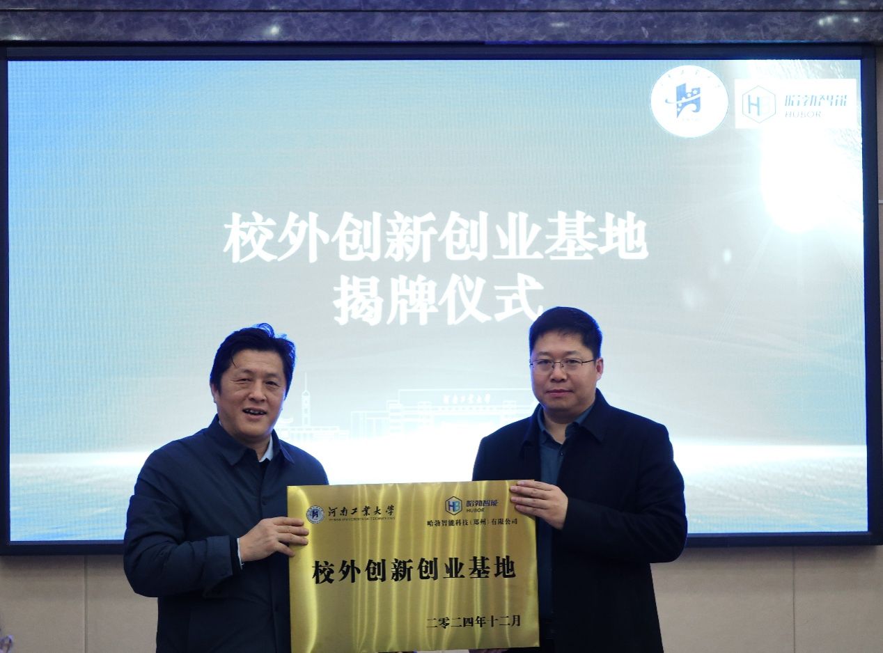 12月11日上午,探球网 与哈勃智能科技(郑州)有限公司在惟新楼6225会议室举行“创新创业基地”揭牌仪式。哈勃智能科技(郑州)有限公司总经理、计维专业2004届毕业生刘宪涛、副总经理宫杰和探球网 党委书记郭晓旻、党委副书记魏雪芹等出席了揭牌仪式。仪式由魏雪芹主持。